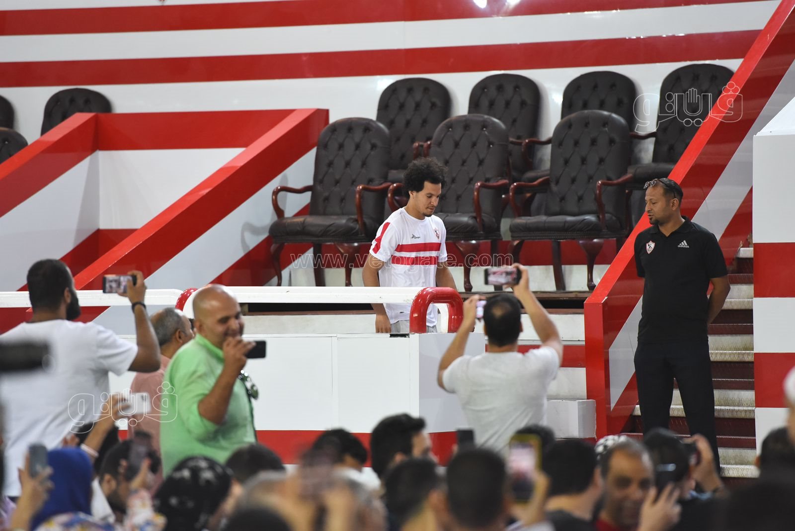 قدم أمير مرتضى منصور، المشرف على الكرة بنادي الزمالك، لاعبي الفريق الجدد في مؤتمر صحفي اليوم الأحد، بصالة حسن حلمي لتقديم
