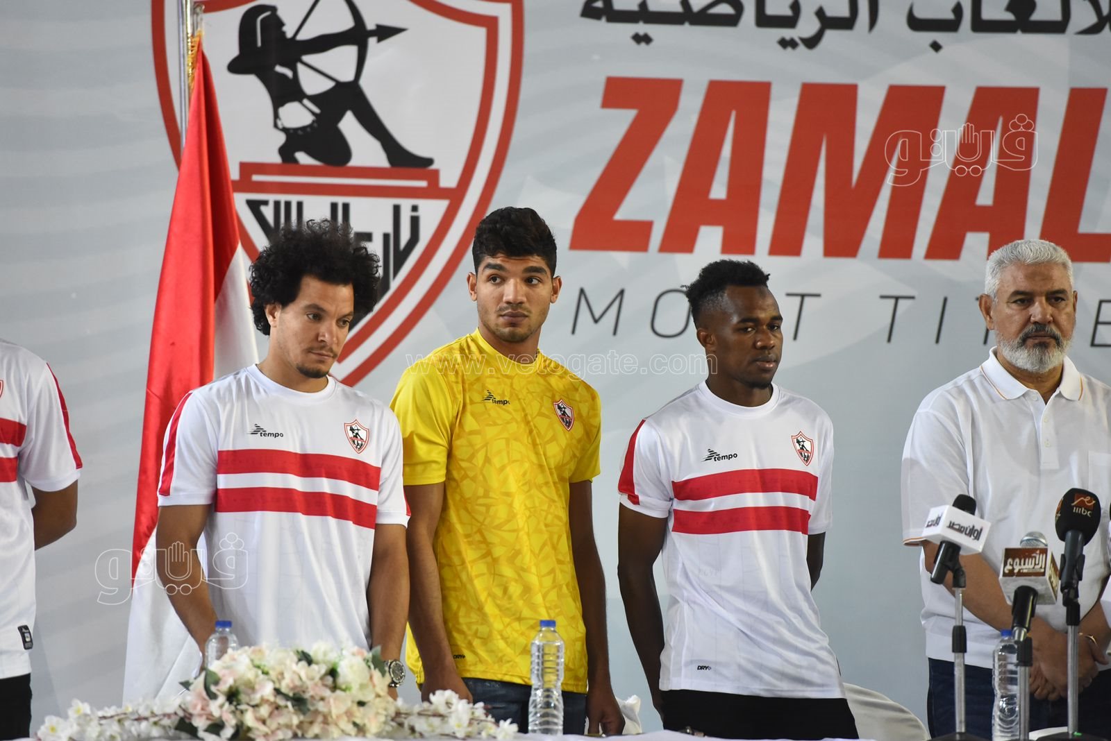 قدم أمير مرتضى منصور، المشرف على الكرة بنادي الزمالك، لاعبي الفريق الجدد في مؤتمر صحفي اليوم الأحد، بصالة حسن حلمي.