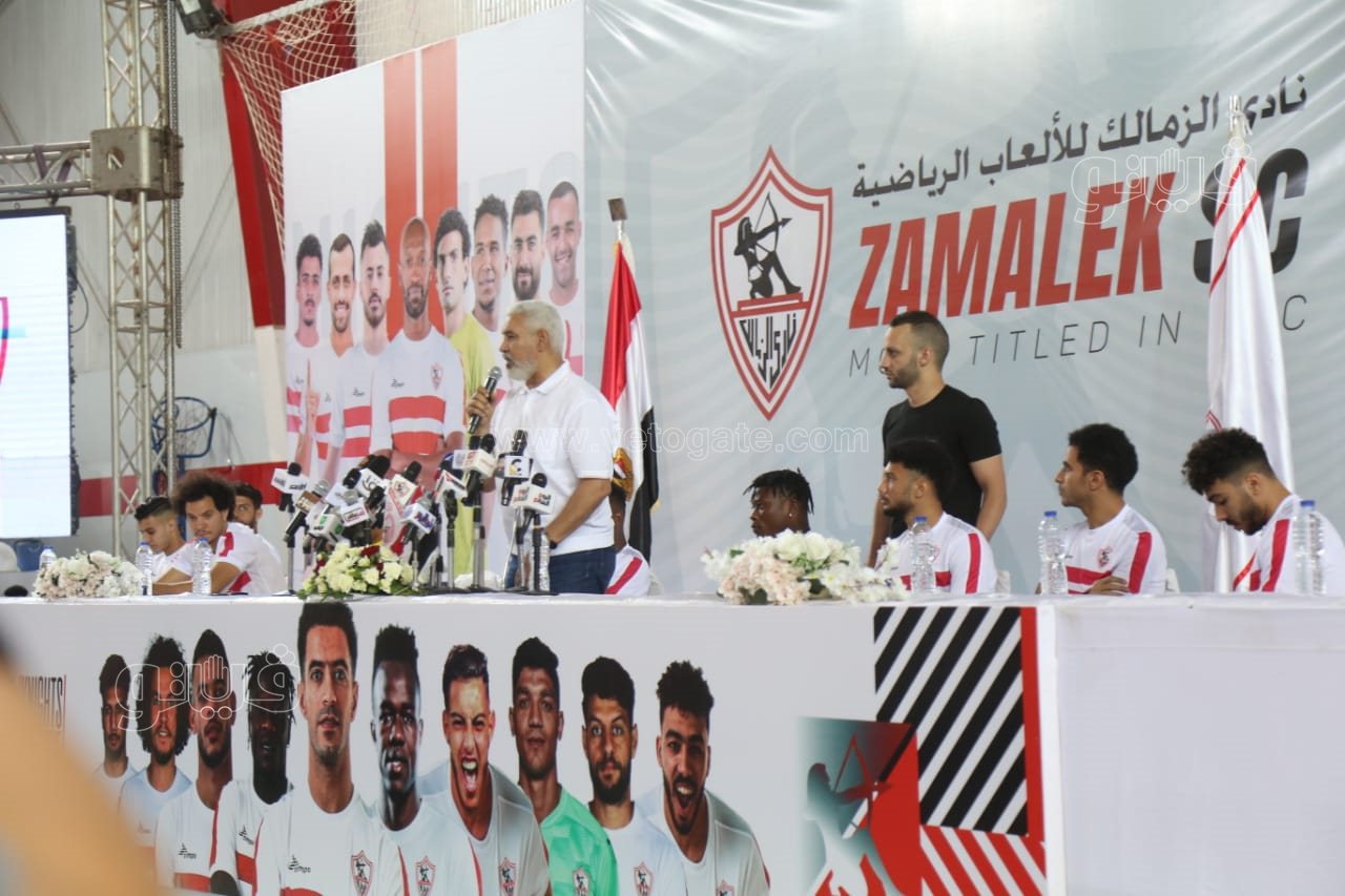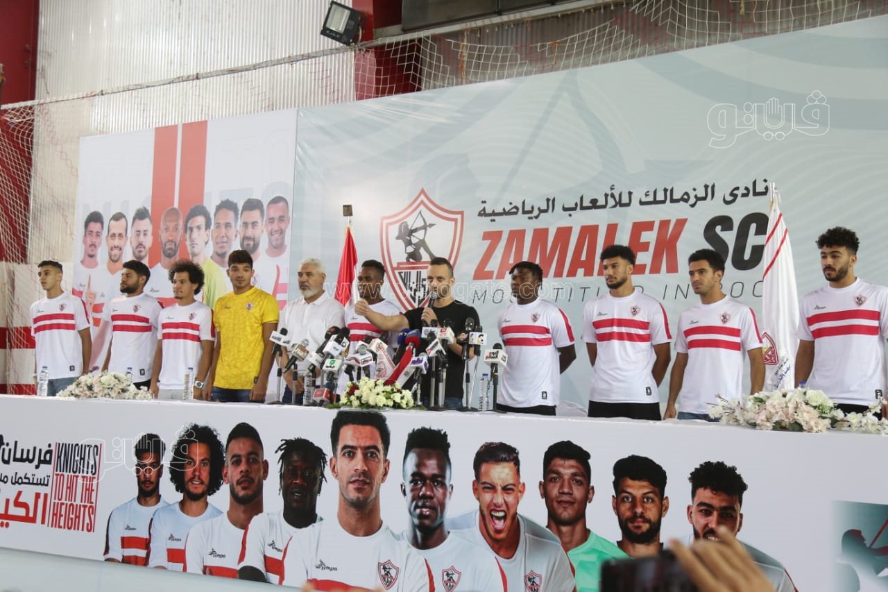 عقد أمير مرتضى، المشرف على الكرة بنادي الزمالك، مؤتمرا صحفيا اليوم لتقديم الصفقات الجديدة التي تعاقد معها النادي في فترة الانتقالات الصيفية الأخيرة.