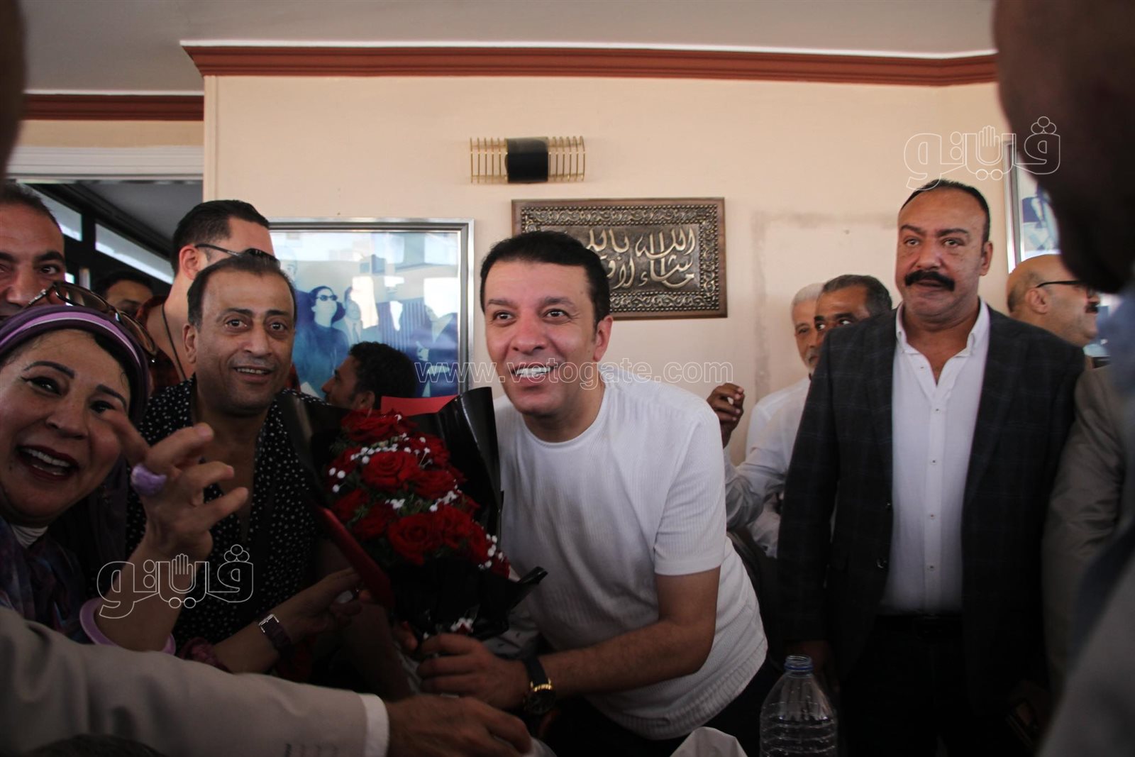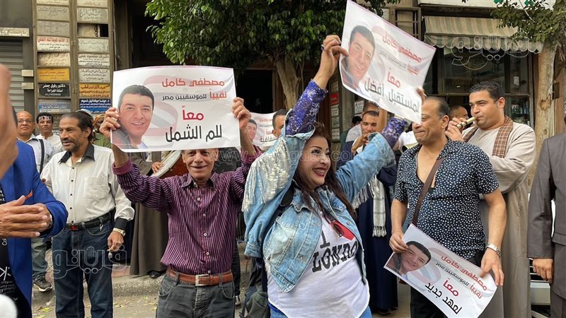 واستقبل عدد كبير من أعضاء نقابة المهن الموسيقية مصطفى كامل على أنغام أغنية “ اخترناه” فور وصوله لمقر النقابة بوسط القاهرة.