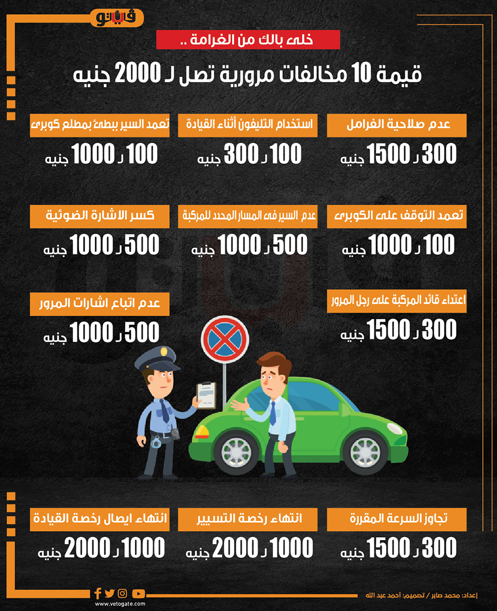 خلى بالك من الغرامة..قيمة 10 مخالفات مرورية تصل لـ 2000 جنيه| انفوجراف الأربعاء 19/أكتوبر/2022 - 07:26 م 10/19/2022 7:26:30 PM الرادار على الطرق محمد صابر شارك طباعة 18 حجم الخط شارك طباعة تجاوز السرعة المقررة تجاوز السرعة إشارات المرور رخصة التسيير رخصة القيادة اسعار المخالفات المرورية زيادة اسعار المخالفات المرورية