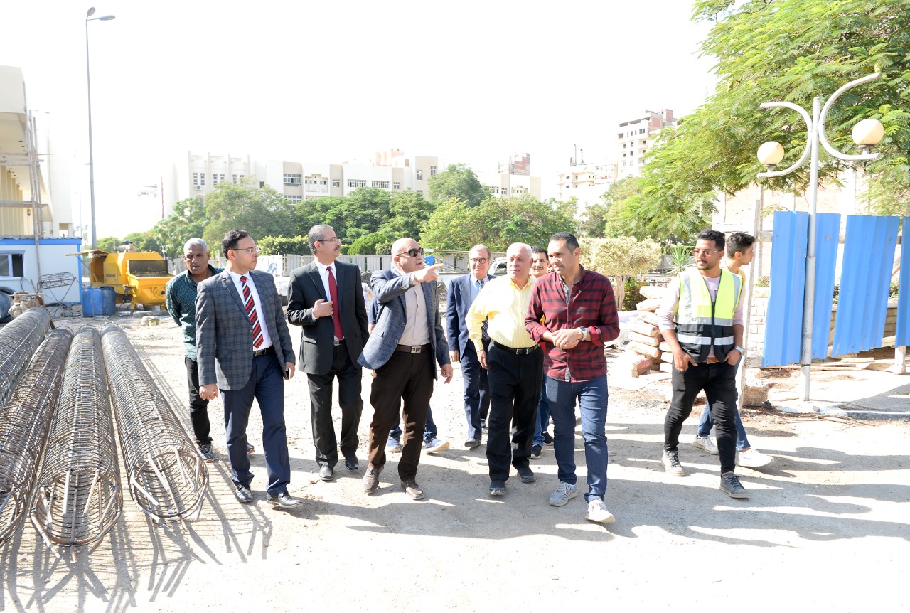 رافق رئيس الجامعة الدكتور محمد عبد العظيم عميد كلية الهندسة لتفقد سير العمل بمشروع إنشاء المبنى الجديد للكلية.