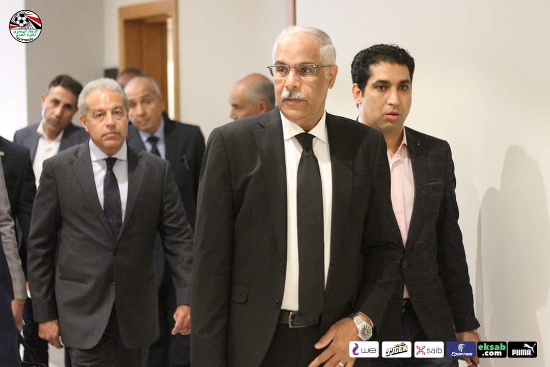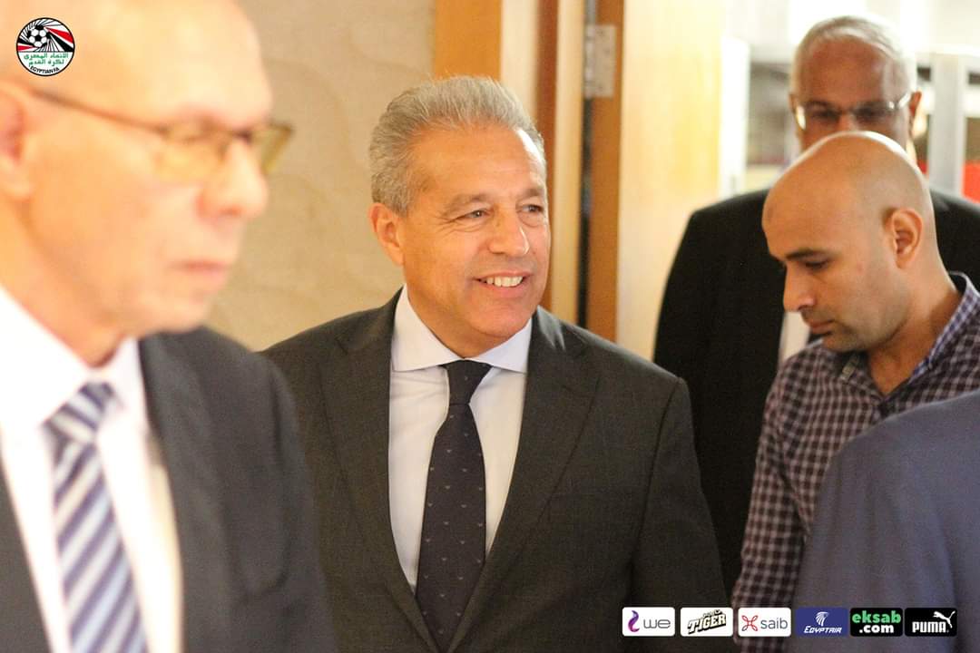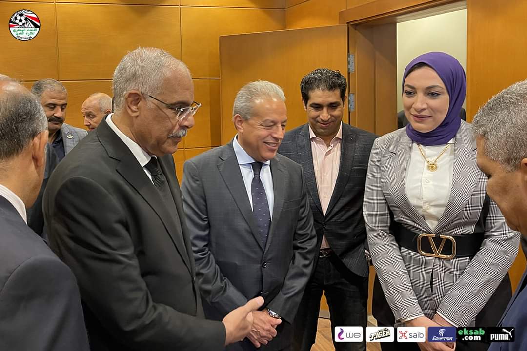 وضم وفد اتحاد الكرة كلا من خالد الدرندلي نائب رئيس الاتحاد، واللواء محمد حلمى مشهور ومحمد أبو الوفا وإيهاب الكومي ودينا الرفاعي أعضاء مجلس إدارة الاتحاد.