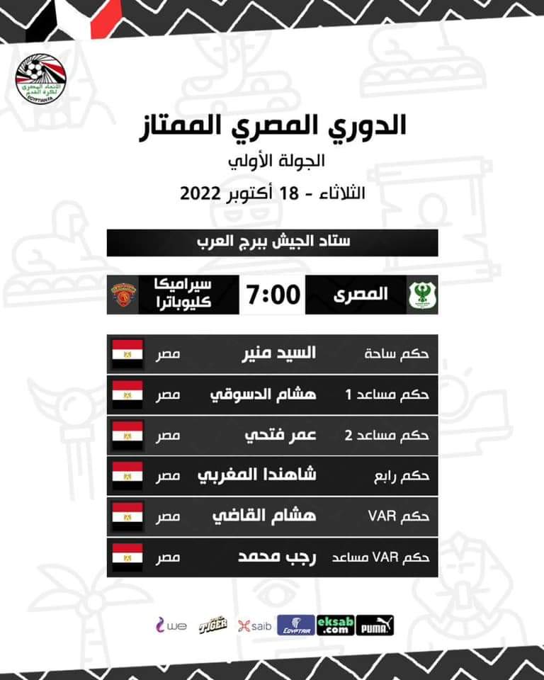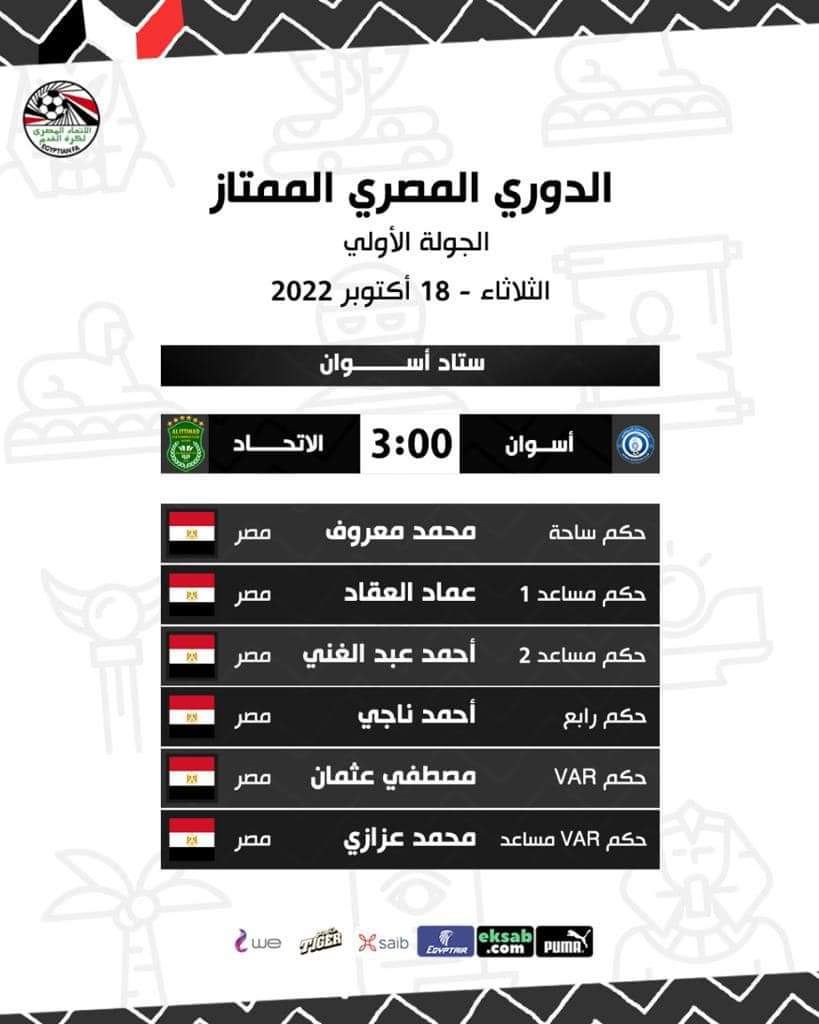 أعلنت لجنة الحكام الرئيسية باتحاد الكرة بقيادة الإنجليزي مارك كلاتنبرج، حكام مباريات الجولة الأولى من بطولة الدوري الممتاز.