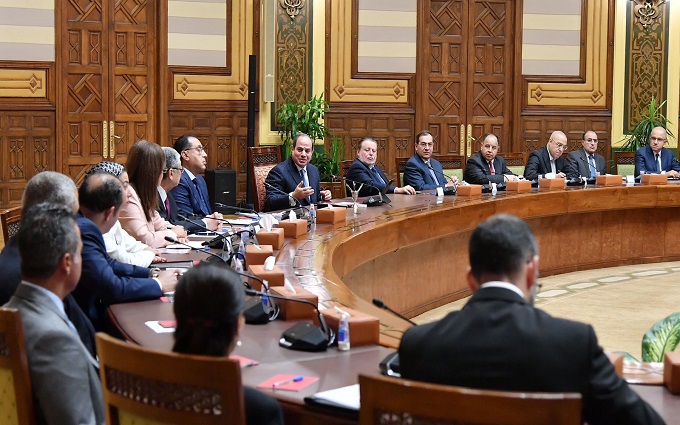 استقبل الرئيس عبد الفتاح السيسي اليوم وفدًا من رجال الأعمال والمستثمرين المصريين من القطاعات الصناعية المختلفة، وذلك بحضور الدكتور رئيس مجلس الوزراء، والقائم بأعمال محافظ البنك المركزي، ووزراء الكهرباء والطاقة المتجددة، والبترول والثروة المعدنية، والتخطيط والتنمية الاقتصادية، والمالية، والبيئة، والإسكان والمرافق والمجتمعات العمرانية، والتجارة والصناعة، ومستشار رئيس الجمهورية للتخطيط العمراني.