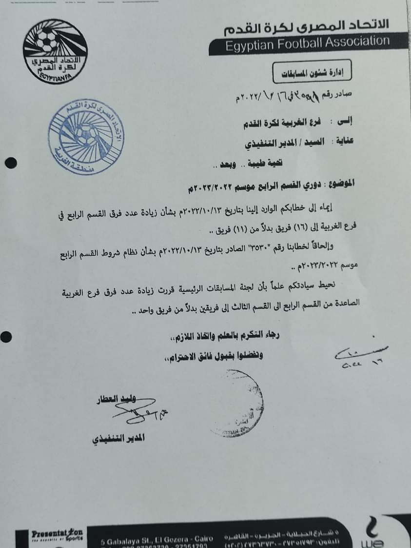 وأخطر اتحاد الكرة الفروع التابعة بشروط ولائحة دوري القسم الرابع استعدادا لانطلاق الموسم الجديد.