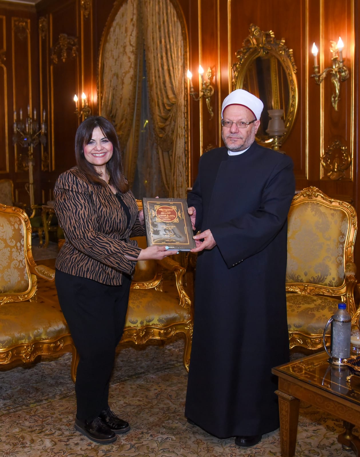 وقد قام فضيلة المفتي بإهداء وزيرة الهجرة كتاب بعنوان "الفتوى والتغير المناخي"، وهو الكتاب الصادر عن المؤتمر في إطار استعدادات مصر لاستضافة قمة المناخ COP27 في نوفمبر القادم، وأعربت عن خالص الشكر لفضيلته على هذا الإهداء.