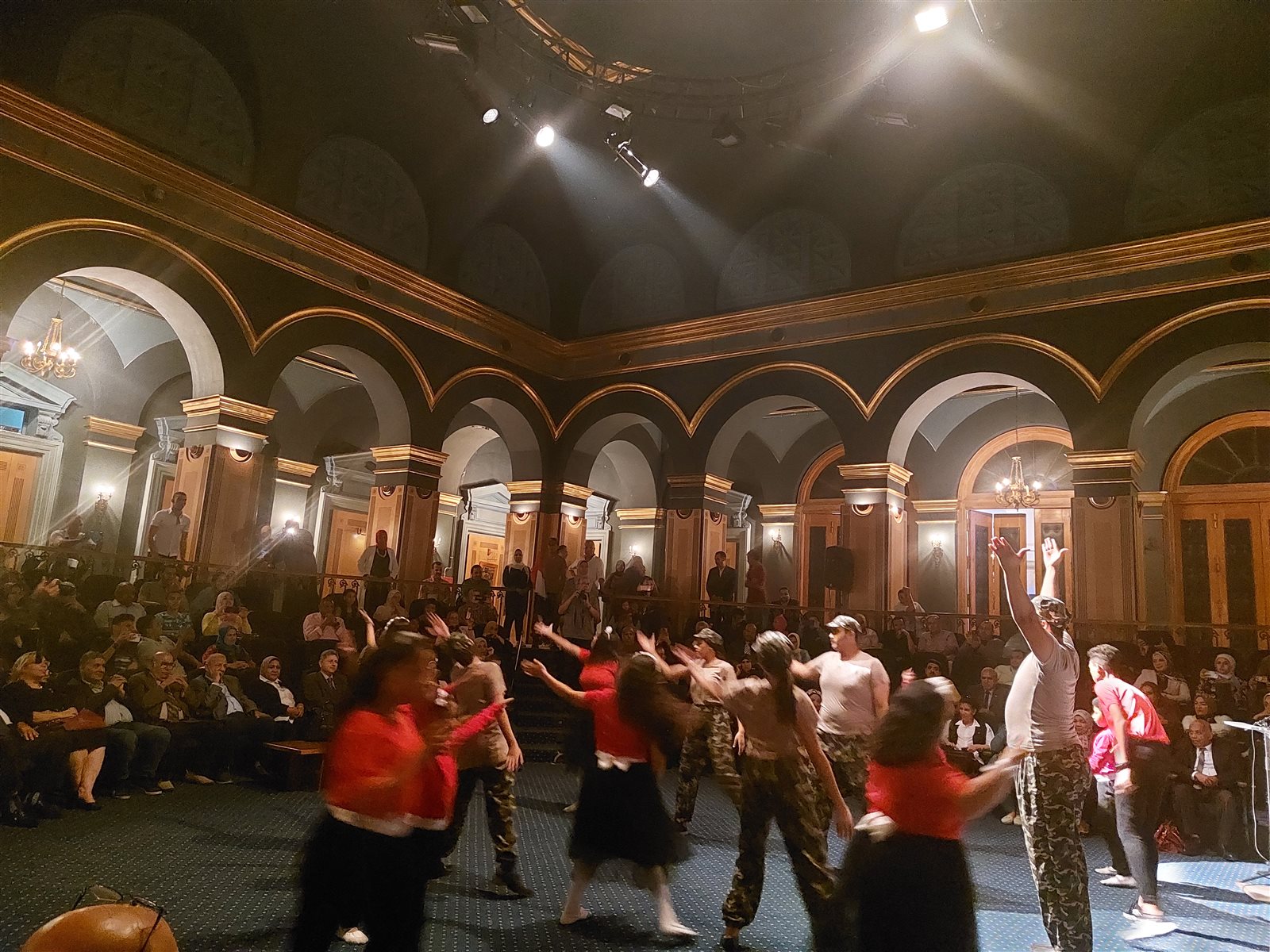 وتخلل الحفل عروض فنية لفرقة متحدي الإعاقة، وكلمات من الأبطال وذكرياتهم عن الحرب