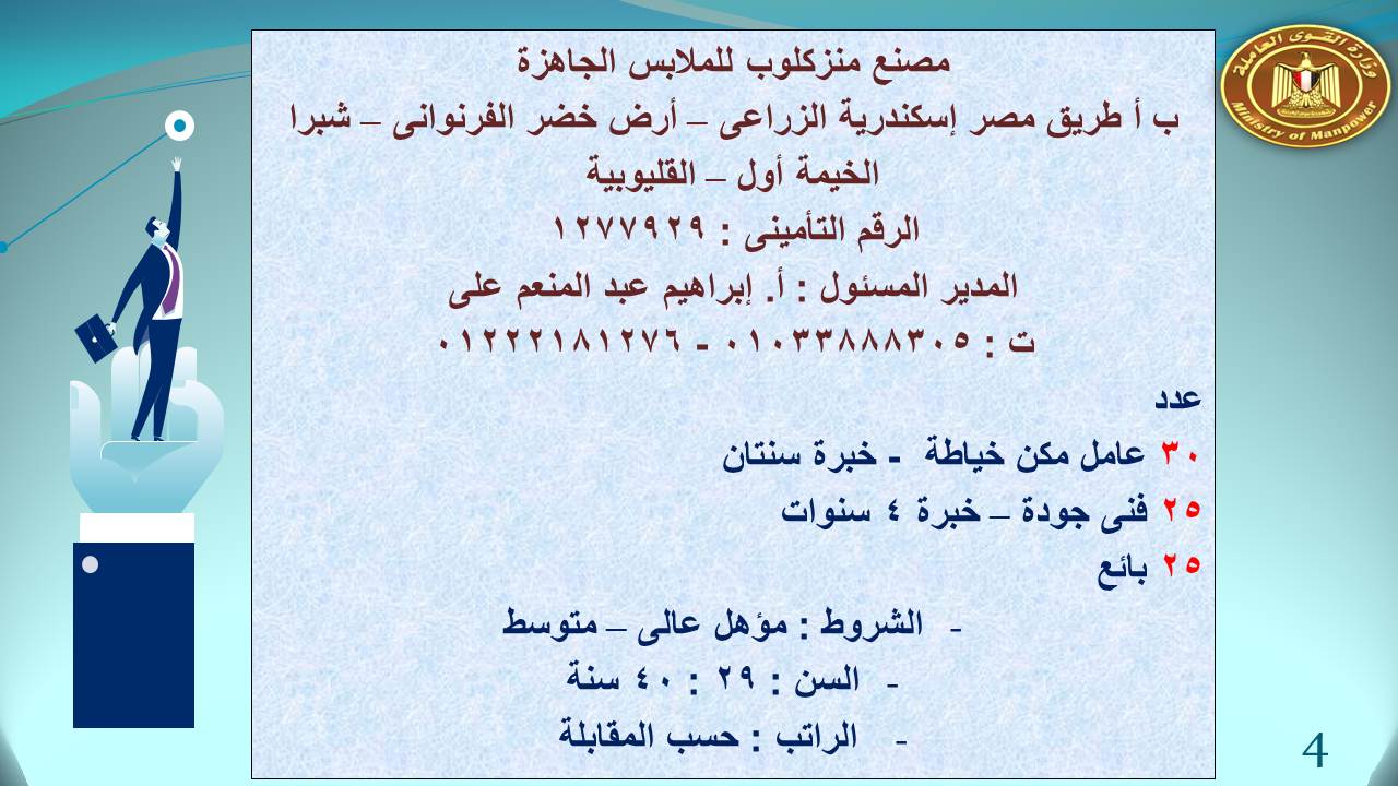 القوى العاملة تعلن عن فرص عمل جديدة بالقطاع الخاص بالقليوبية