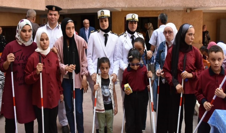 واصلت وزارة الداخلية بكافة قطاعاتها بالتنسيق مع وزارة التضامن الاجتماعي تنظيم زيارات لعدد من مدارس الأطفال ذوى الإعاقة البصرية على هامش الاحتفال بتلك المناسبة بنطاق محافظات (بورسعيد – كفر الشيخ – البحيرة – الشرقية – المنوفية – المنيا – سوهاج) حيث تم إهدائهم (عصا بيضاء).