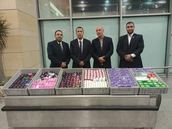 تمكن رجال جمارك مطار برج العرب الدولي من ضبط محاولة تهريب كمية من المكملات الغذائية ومستحضرات التجميل والألعاب الجنسية وذلك بالمخالفة لقانون مزاولة مهنة الصيدلة رقم 127 لسنة 1955 وقانون الجمارك رقم 207 لسنة 2020 ولائحته التنفيذية رقم 430 لسنة 2021 وقانون الاستيراد والتصدير رقم 118 لسنة 1975 ولائحته التنفيذية.