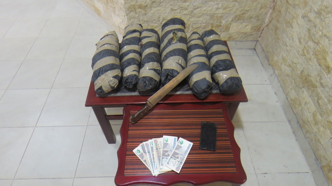 وضبط أحد العناصر الإجرامية، له معلومات جنائية، مقيم بدائرة المركز حال تواجده بمسكنه، وبحوزته (كمية من مخدر البانجو وزنت 15 كيلو جرام – مبلغ مالي – هاتف محمول – سلاح أبيض).