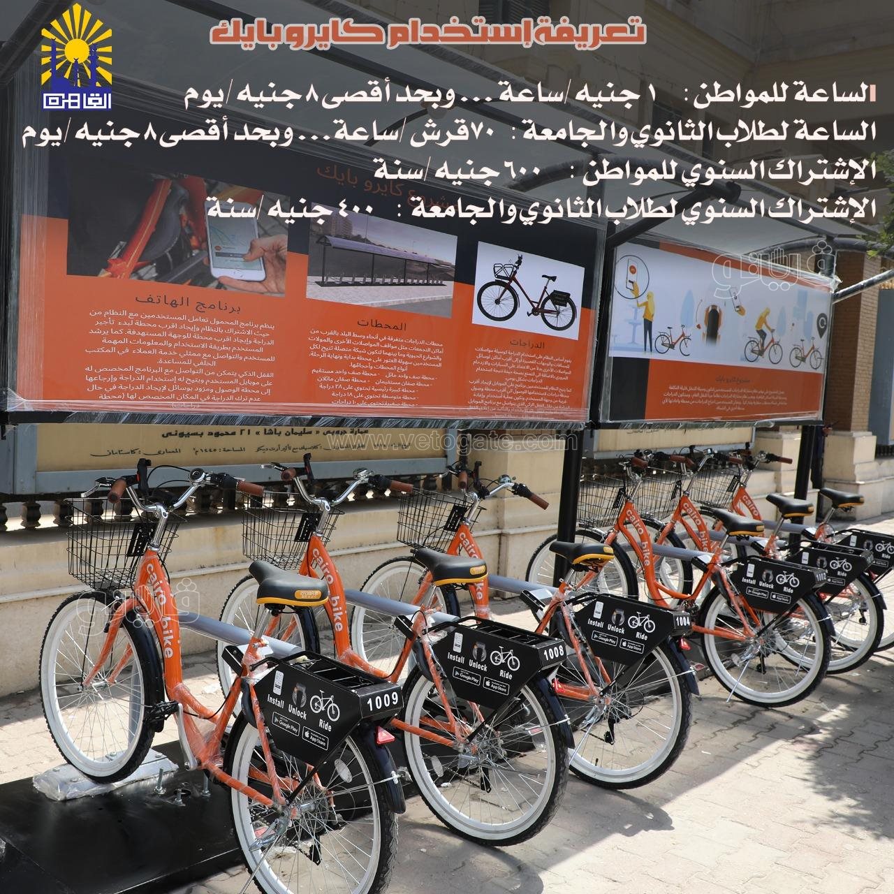 سعر استقلال الدراجة جنيه واحد في الساعة وبحد أقصى ٨ جنيهات في اليوم.