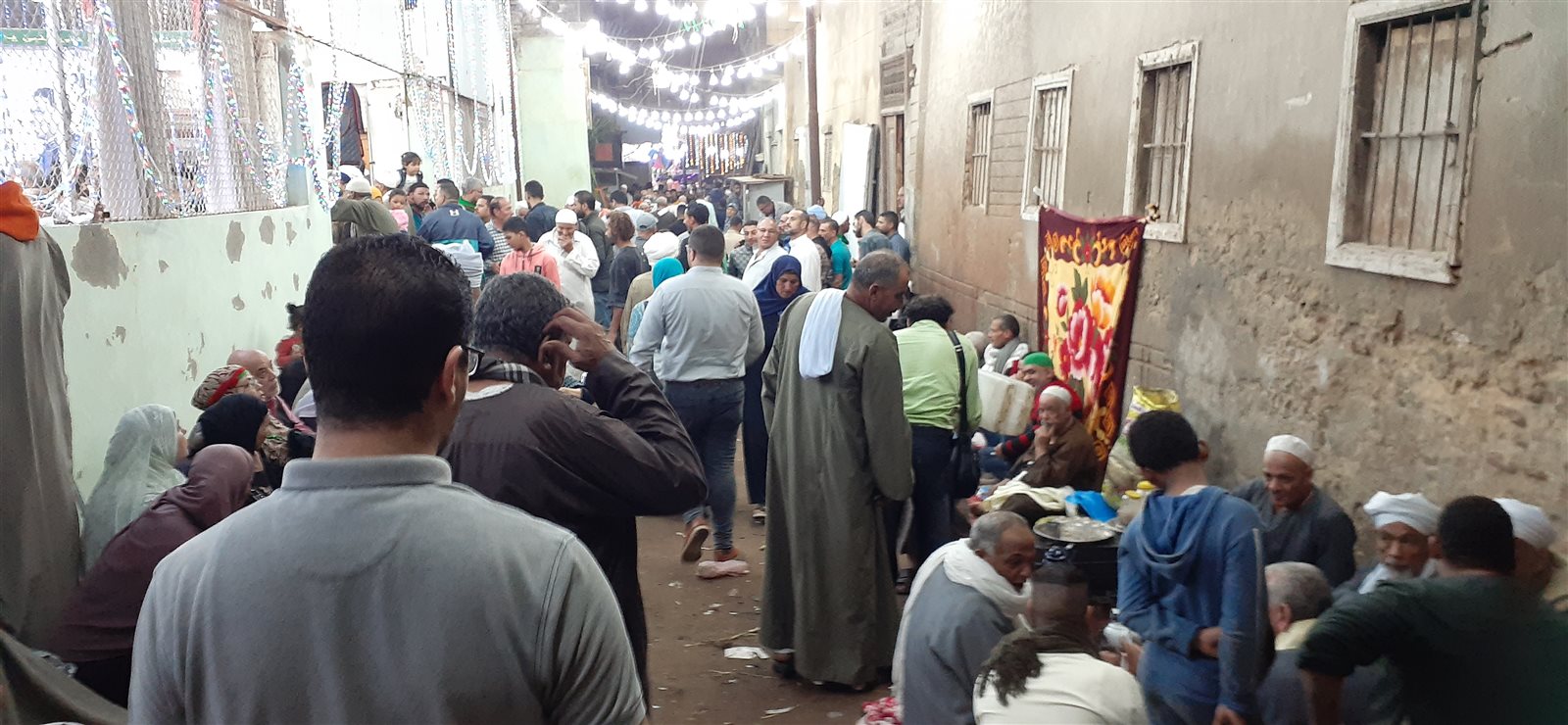 وافترش المتصوفون الساحة والشوارع الجانبية، وأقاموا بها حلقات تواشيح وذكر وموائد ابتغاء بركات الصالحين وزيارة الضريح أيضا رغم قرار محافظ الغربية بإلغاء الاحتفال بسبب تداعيات فيروس كورونا.