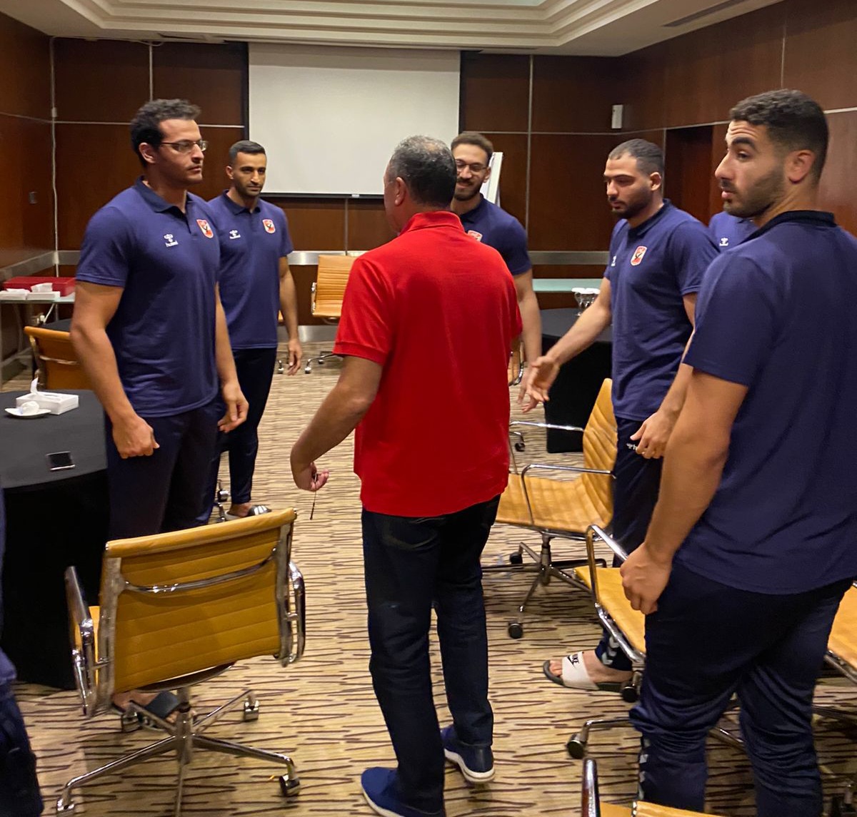 حرص محمود الخطيب، رئيس النادي، والمتواجد حاليا في المملكة العربية السعودية لأداء مناسك العمرة عقب رحلته العلاجية في فرنسا، بعد ظهر اليوم الجمعة، على زيارة، بعثة الفريق الأول لكرة اليد «رجال»، في مقر إقامتها بعد التأهل إلى نصف نهائي بطولة كأس العالم التي تجري فعالياتها في مدينة الدمام خلال الفترة من 17 إلى 23 أكتوبر الجاري.