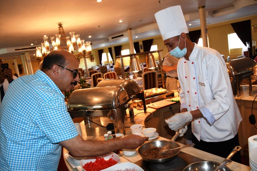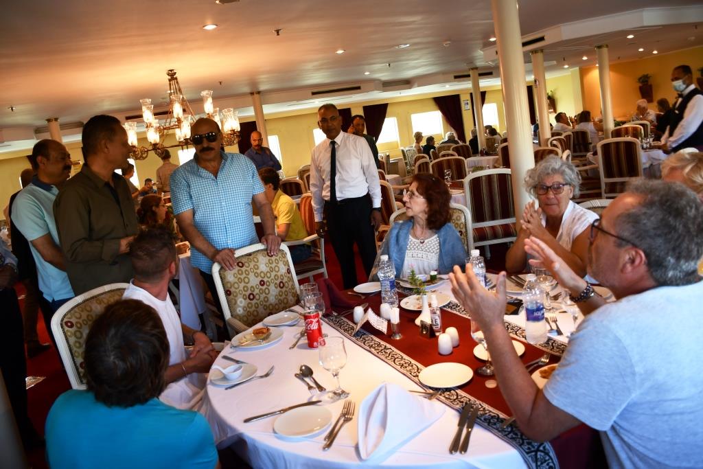حيث اطمئن المحافظ علي جودة ومستوى الخدمات السياحية وخاصة الوجبات والأطعمة المقدمة للأفواج السياحية والزائرين المصريين من ضيوف احتفالية تعامد الشمس علي وجه رمسيس الثانى بمدينة أبوسمبل.