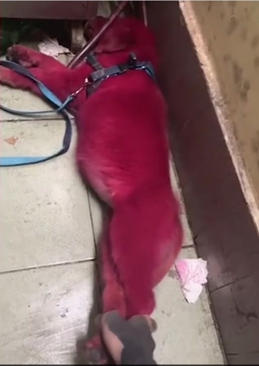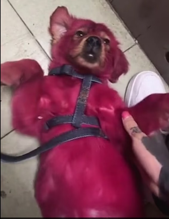 نشر أحد رواد التواصل الإجتماعي بجانجدونج جنوب الصين مؤخرًا صور وفيديوهات لكلبه الذي قام بصبغه باللون البمبى على موقع التواصل الاجتماعي ما أثار غضب المتابعين.