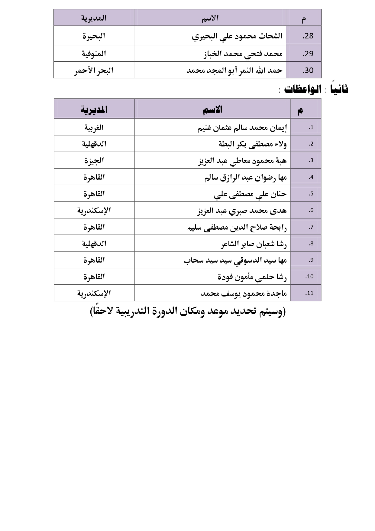 نشرت وزارة الأوقاف أسماء المرشحين لدورة فقه الحج المتخصصة من المتقدمين لمسابقة مرافقة بعثة الحج ؛ ليتم اختيار أكثرهم تميزًا لمرافقة بعثة الحج لعام 1444هـ - 2023م، وهم: