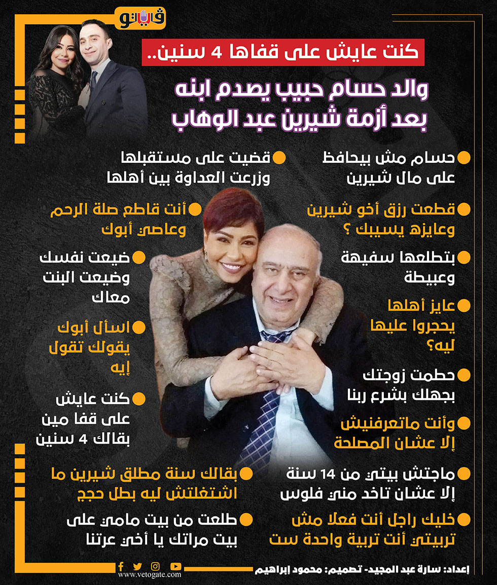 وكان حسين حبيب والد المطرب حسام حبيب علق علي تصريحات نجله بعد مداخلته الهاتفية أمس في برنامج “الحكاية” والذي يقدمه الإعلامي عمرو أديب للحديث علي تفاصيل أزمة شيرين عبد الوهاب.