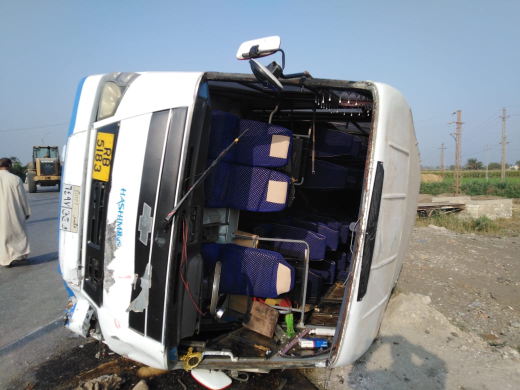 عمال بمصنع ملابس.. إصابة 6 في انقلاب أتوبيس بطريق إهناسيا في بني سويف | صور