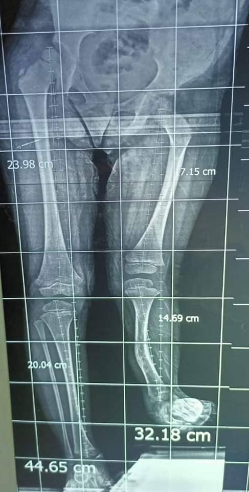 وتم عمل إطالة للعظمة باستخدام مثبت خارجي "اليزاروف" وذلك مجانًا بقرارعلاج تابع للتأمين الصحي يتخطي 25 ألف جنيه، وبعد إجراء كافة الفحوصات المعملية والأشعات اللازمة، والمريض الآن بحالة جيدة ومستقرة تحت متابعة الفريق الطبي بالمستشفى.