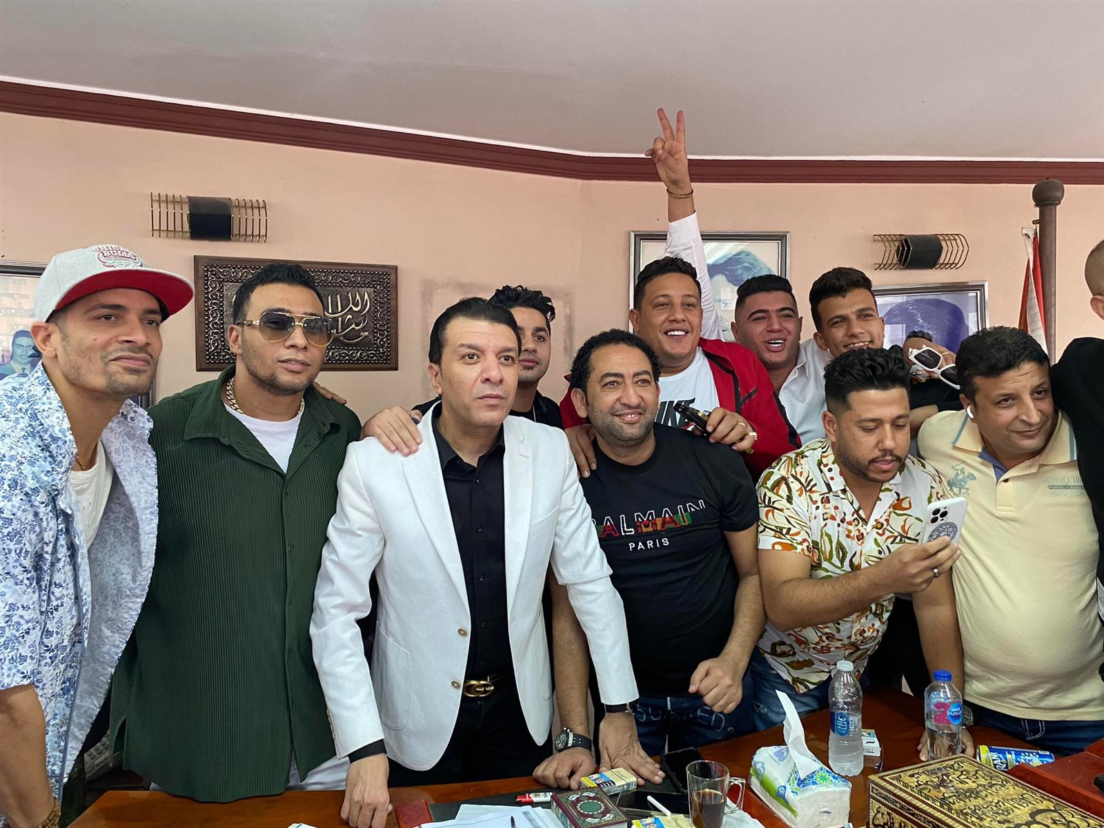 نقيب الموسيقيين يجتمع بمطربي المهرجانات داخل مكتبه | صور