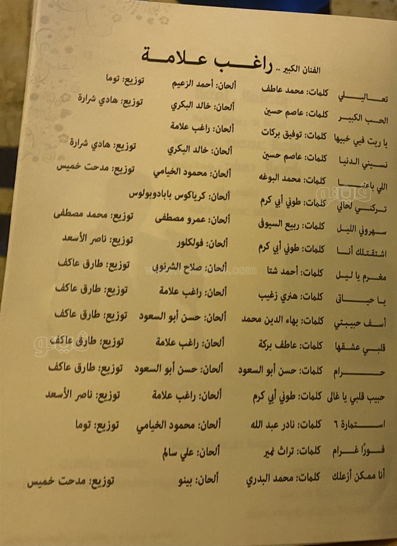 وتنشر "فيتو" البرنامج الغنائي لراغب علامة خلال الحفل، وتفاصيل الأغنيات المقرر تقديمها كالتالي: