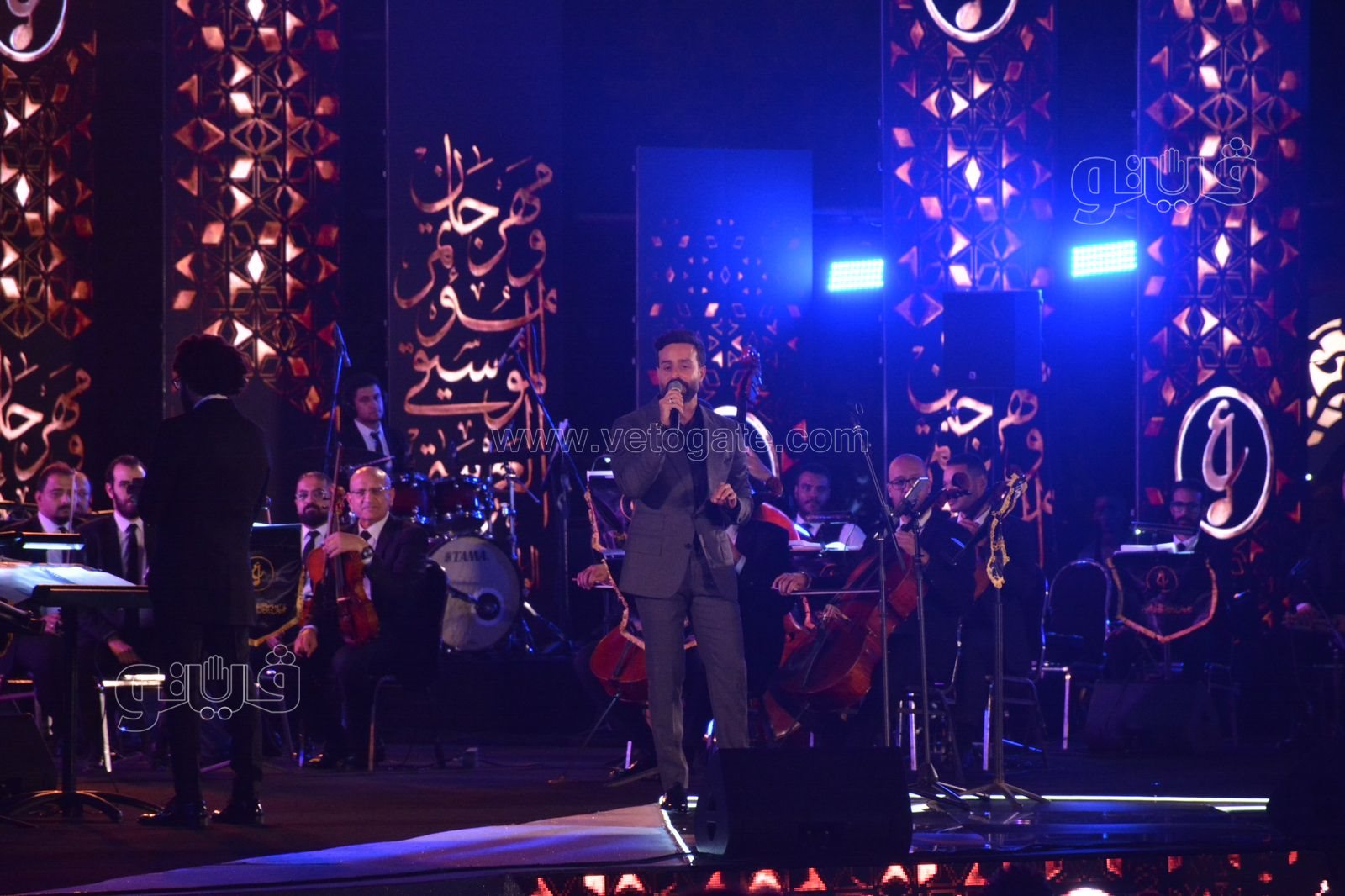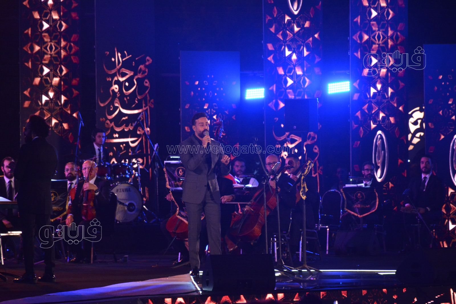 وتابع: "لحظي الحلو ان استاذي موجود هنا وان شاء الله نقضي سهرة حلوة" في إشارة للنجم اللبناني راغب علامة والذي من المقرر أن يحيي الفاصل الثاني من الحفل.