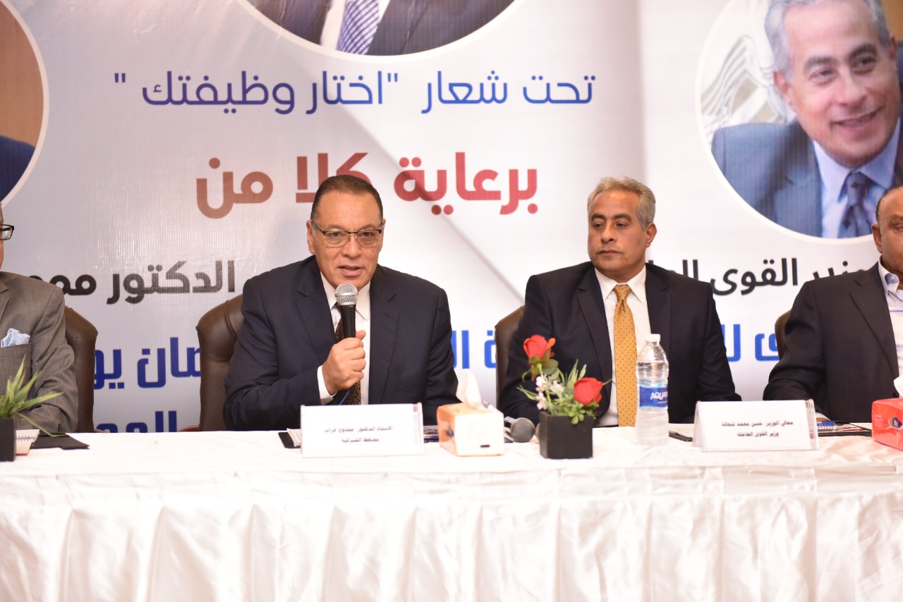 وخلال كلمته أكد وزير القوى العاملة على اهتمام القيادة السياسية بملف التدريب والتشغيل، وتوعية الشباب والخريجين الجدد بالعمل في القطاع الخاص، وذلك في إطار توجهات الدولة نحو اقامة المشروعات القومية والمناطق الصناعية، وتوفير عمل لائق وحياة كريمة للمواطنين خاصة الشباب وذوى الاحتياجات الخاصة.