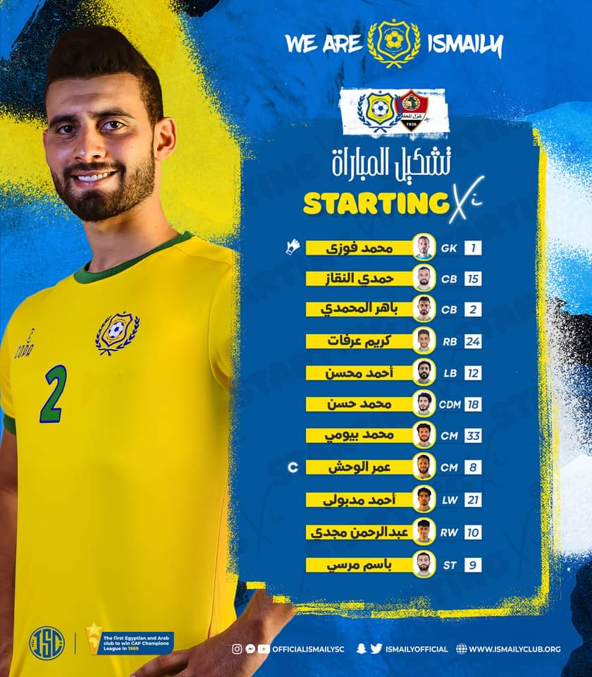 ويلعب الإسماعيلي بتشكيل يضم كلا من: