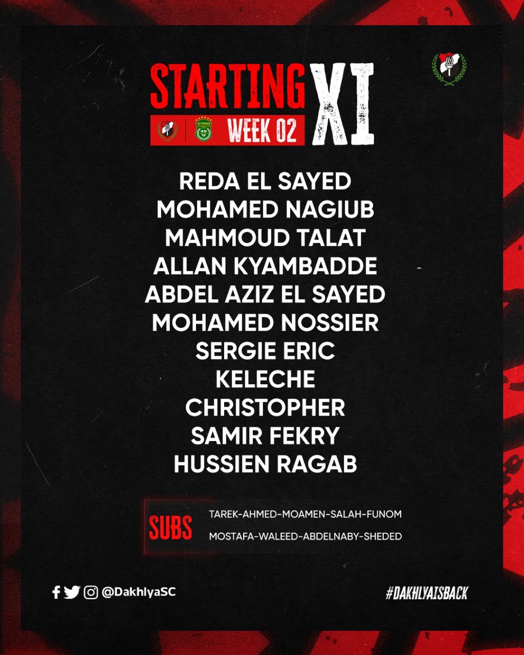 وفى المقابل، اعلن رضا شحاتة، المدير الفنى لفريق الداخلية،تشكيلة فريقه بقيادة عبد العزيز السيد زيزو والتي جاء كالتالي