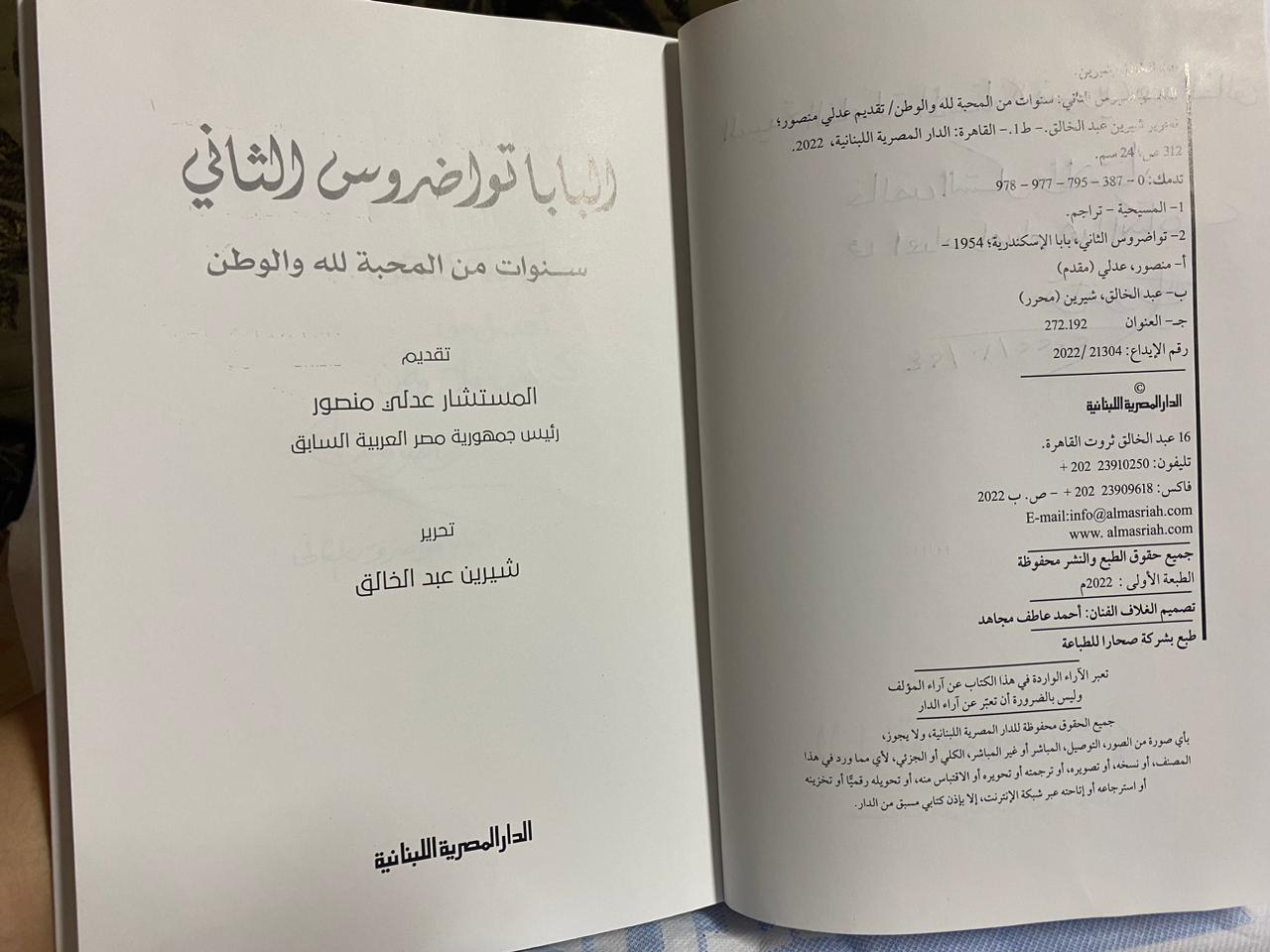 وقال محمد رشاد، رئيس مجلس إدارة الدار المصرية اللبنانية: إن الكتاب الذي تفخر الدار بإصداره يمثل إضافة حقيقية لوعي المثقف المصري والعربي إذ يقدم قصة البطريرك رقم 118 في تاريخ الكنيسة القبطية الأرثوذكسية، ويطرح رؤيته التنويرية ودوره المهم خلال السنوات الماضية ومواقفه الوطنية العظيمة في ثورة 30 يونيو وما بعدها وإصراره الدائم على دحض الصور المغلوطة عن مصر لدى الإعلام الغربي.