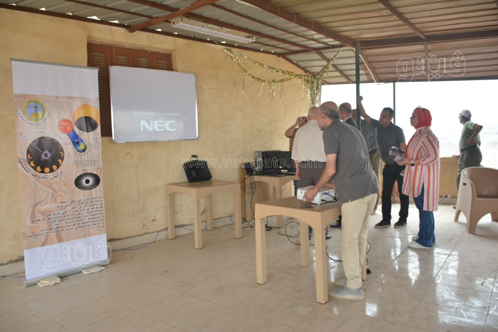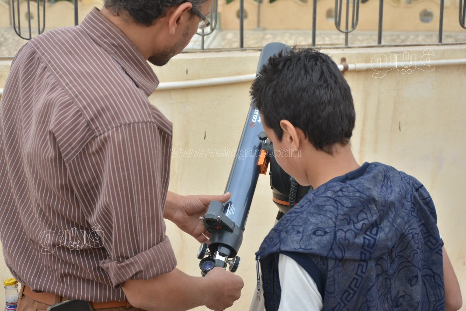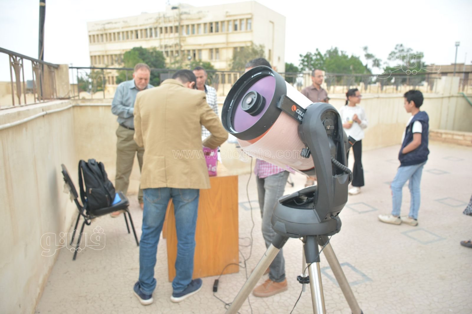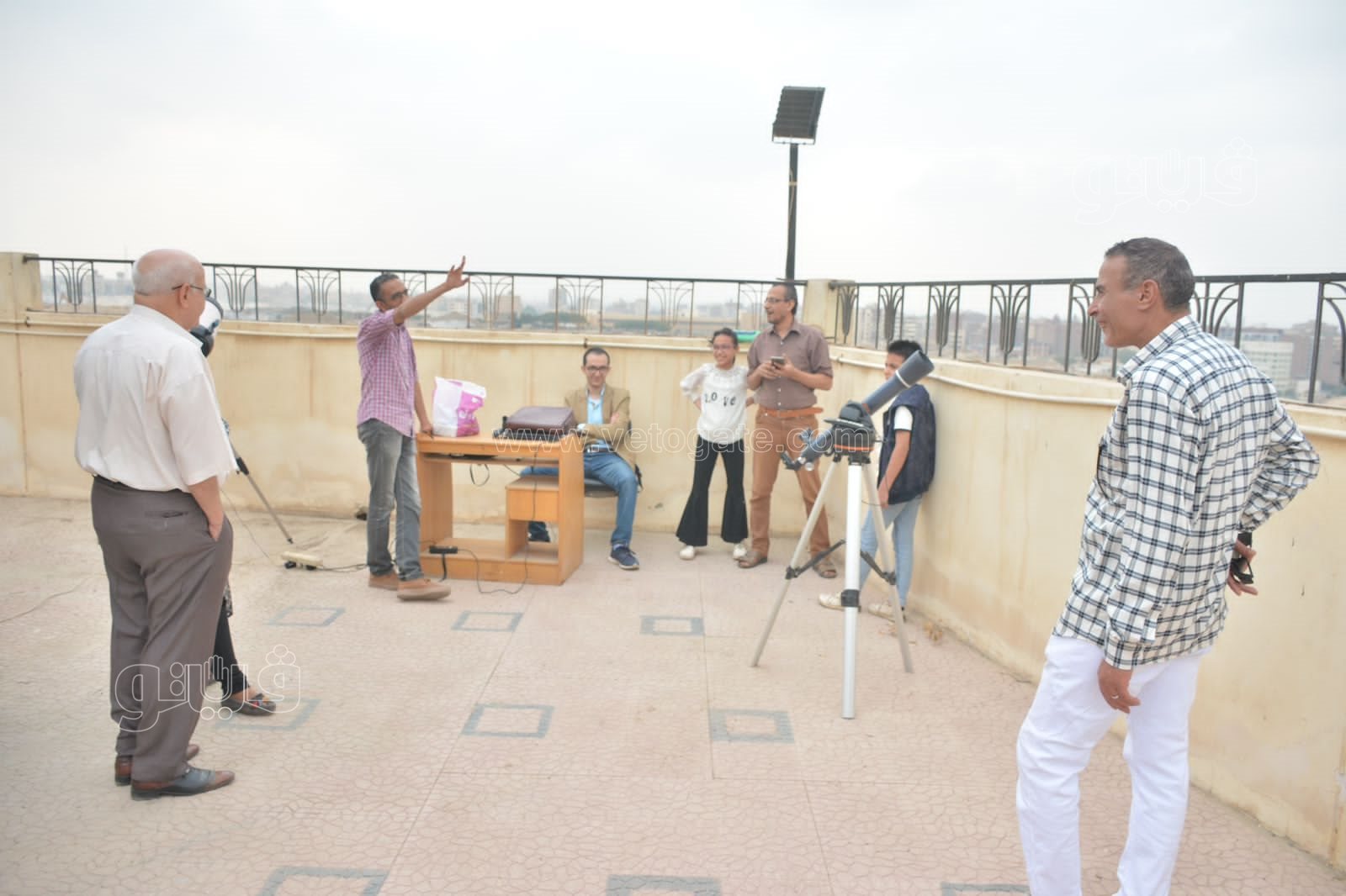 بحضور عدد من الأسر.. القومى للبحوث الفلكية يستعد لرصد كسوف الشمس | فيديو وصور