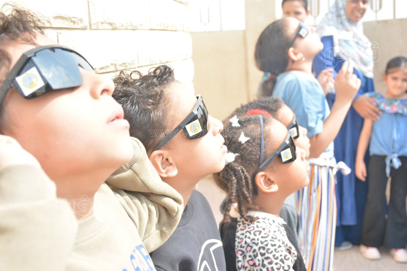 الأطفال يشاركون في رصد كسوف الشمس بمرصد حلوان | فيديو وصور