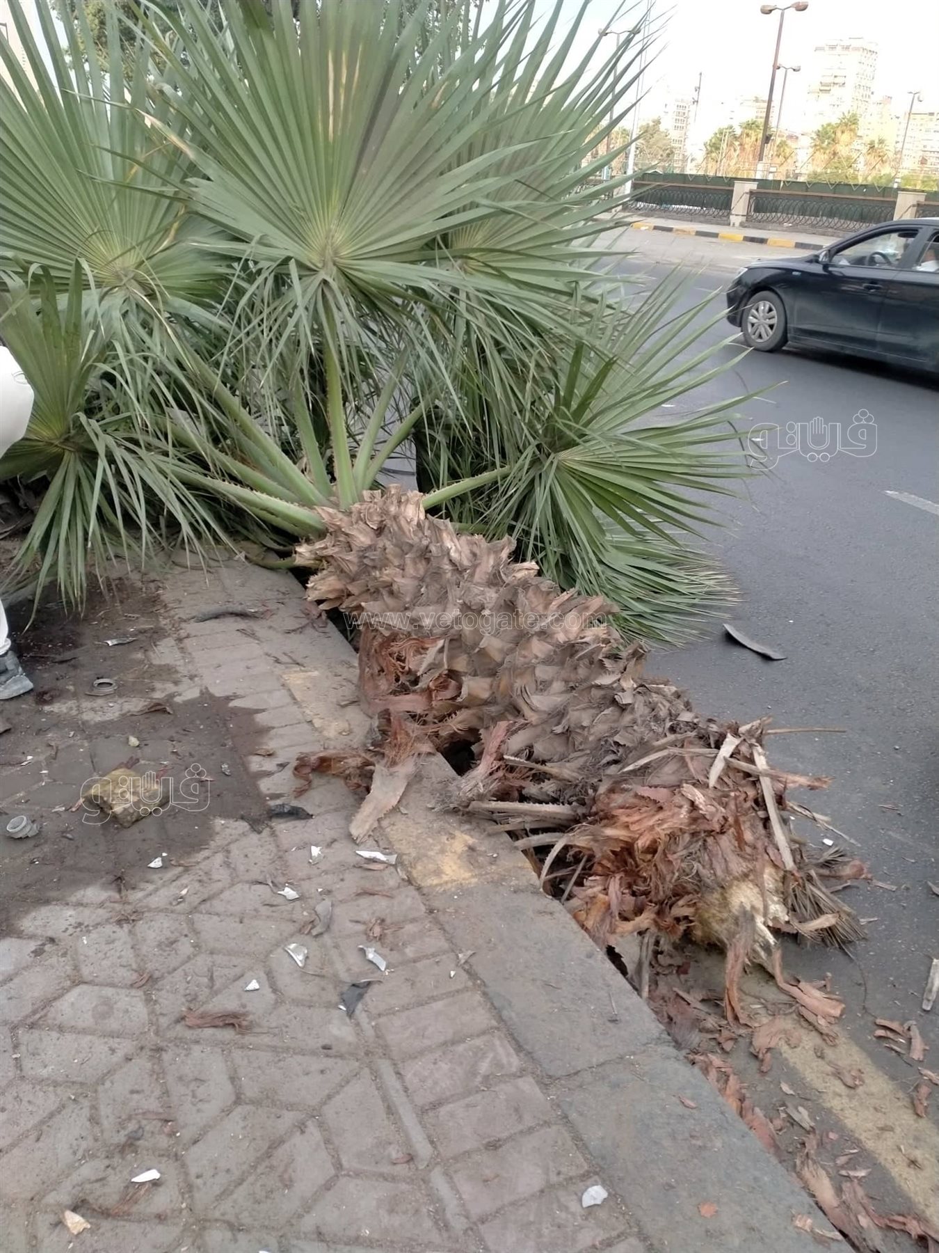 اصطدمت سيارة بنخلتين بعد أن خرجت عن المسار وصعدت فوق الرصيف بشارع البحر الأعظم في الجيزة.