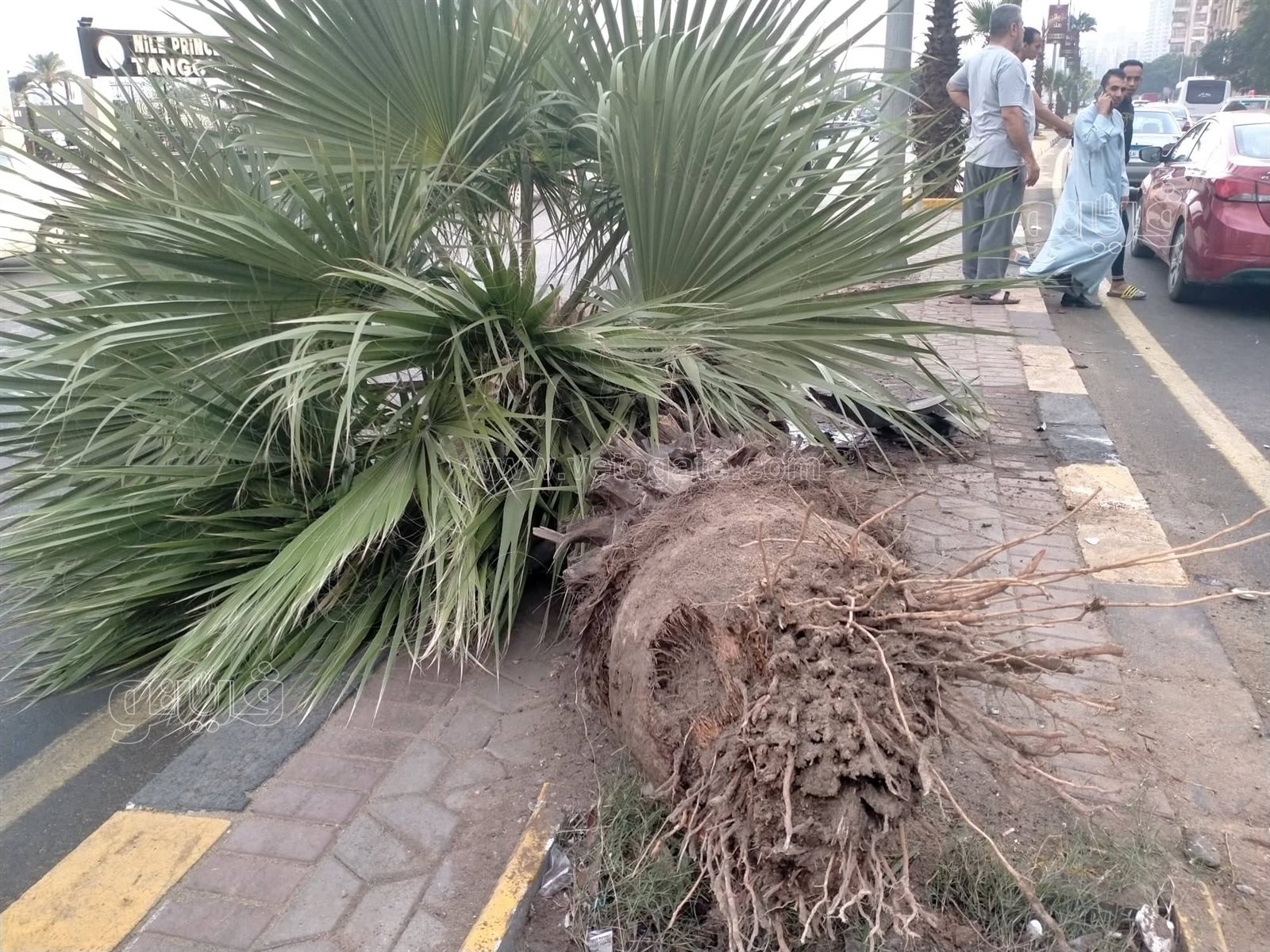 وأدى الحادث لإصابة طفل في وجهة إصابة طفيفة، وخلع نخلتين من مكانهما علي الرصيف.