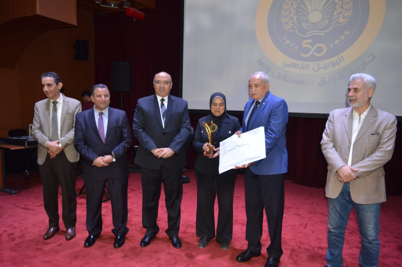 وفى الختام تم توزيع دروع المشاركة والتميز فى المسابقة القمية الفرعون الذهبى 100 عام من التاريخ للجامعات المصرية حيث شاركت 15 جامعة وهم: جامعة عين شمس وجامعة المنوفية وجامعة المنيا وجامعة أسيوط وجامعة المنصورة وجامعة طنطا وجامعة جنوب الوادى وجامعة حلوان وجامعة الأزهر وجامعة الأقصر وجامعة قناة السويس وجامعة دمياط وجامعة كفر الشيخ وجامعة بنى سويف وجامعة حورس