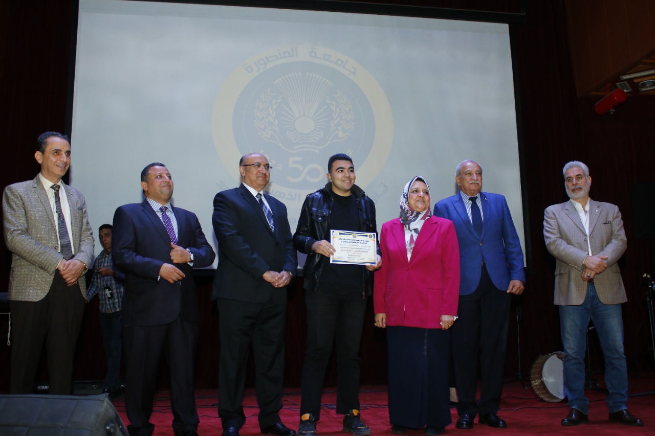 واختتمت الاحتفالية بفقرة غنائية من كورال جامعة المنصورة بقيادة المايسترو محمد حاتم.