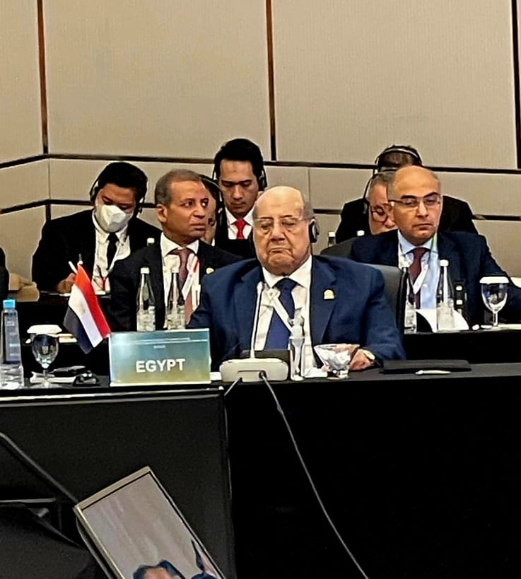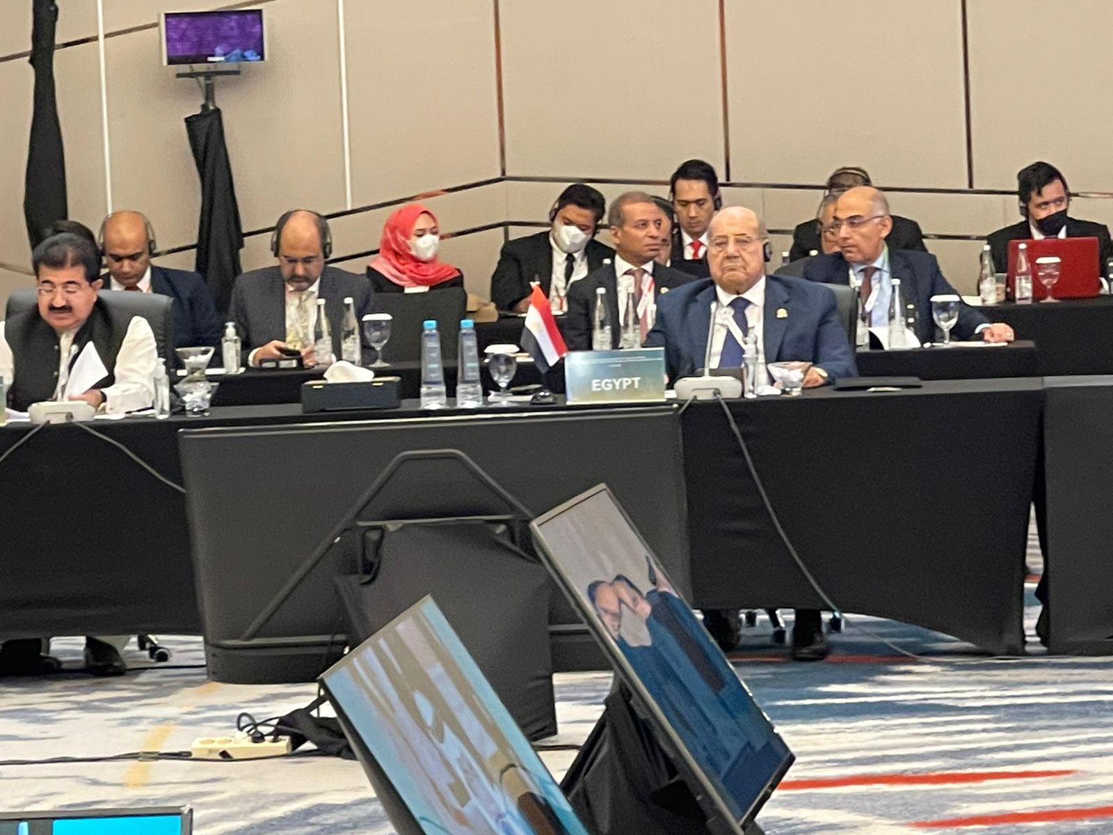 وقال في كلمته: أُعربُ للمجلسِ الاستشاريِّ الشعبيِّ بجمهوريةِ إندونيسيا عن امتنانِي لحضورِ هذا المنتدى الدوليِّ الهام، المُنعقدِ على أرضِ بلدٍ إسلاميٍّ شقيقٍ، جمعتنا به علاقاتُ أُخُوَةٍ ضاربةٍ بجذورِها في أعماق التاريخ، وفي مدينةِ باندونج التاريخيةِ، التي شهدت انعقادَ المؤتمرِ الآسيويِّ الأفريقيِّ عام ١٩٥٥، بدعوةٍ من الرئيسِ الإندونيسيِ آنذاك، أحمد سوكارنو، وحضورِ عددٍ من رؤساءِ الدولِ الآسيويةِ والأفريقيةِ، من بينهم الرئيسُ المصريُ الراحلُ جمال عبد الناصر، وهو المؤتمرُ الذي انطلقت منه حركةُ عدمِ الانحيازِ التي أدت إلى مسيرة الاستقلالِ والتحررِ من الاستعمارِ في كثيرٍ من البلدان.