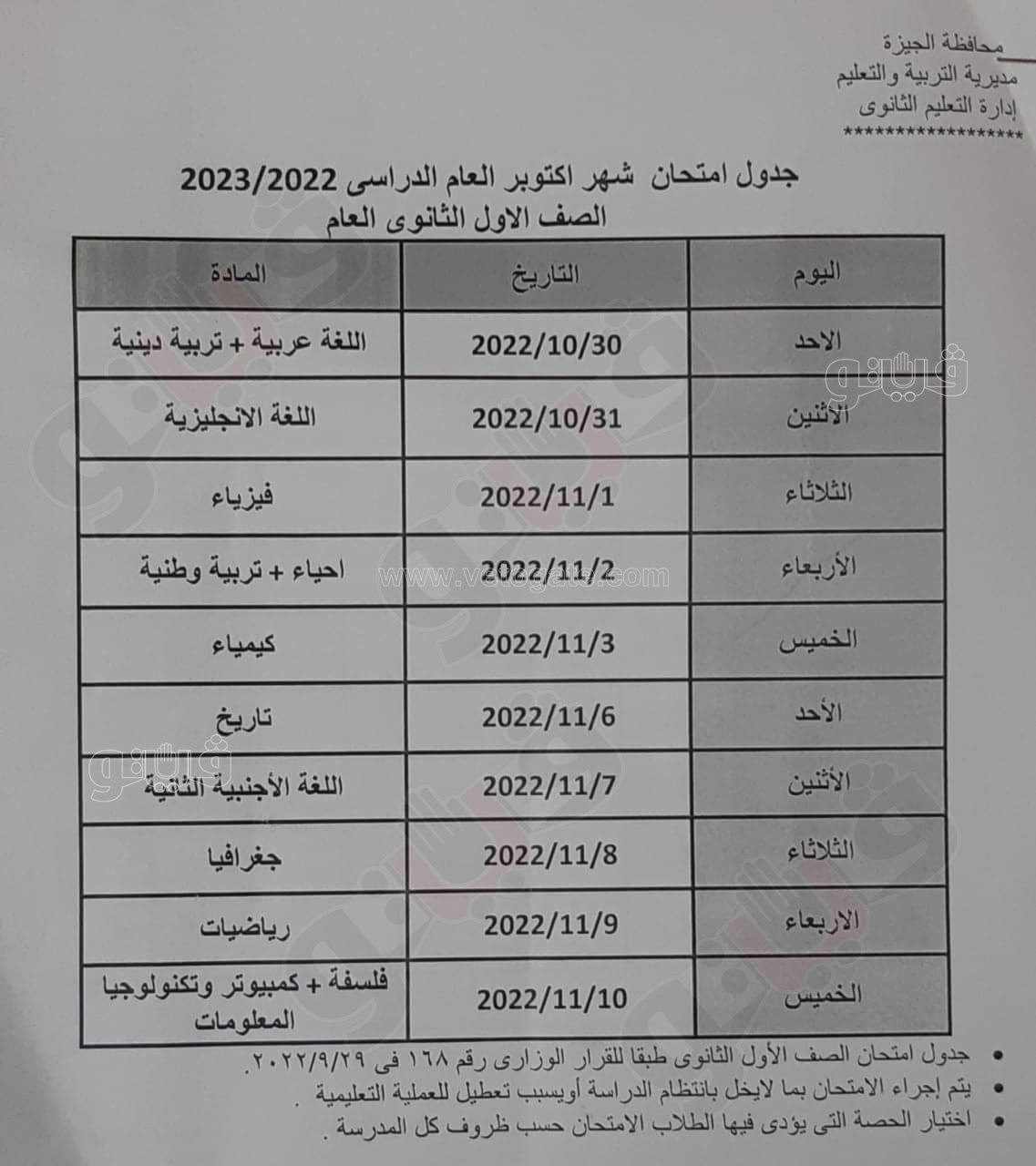 "تعليم الجيزة" يعلن جداول امتحانات شهر أكتوبر لصفوف النقل | صور