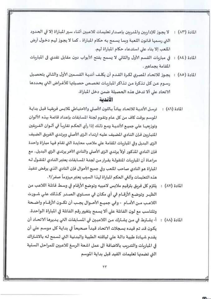 تنشر فيتو لائحة مسابقات اتحاد الكرة موسم 2022-2023 بعد اعتمادها من مجلس إدارة الجبلاية بقيادة جمال علام وإرسالها للفروع وإبلاغ الأندية المشاركة.