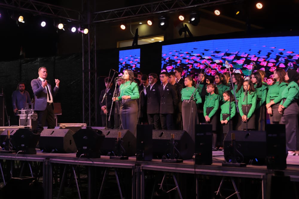 وبدأت الحفل بفرقة كورال الشباب والرياضة بقيادة الفنان غريب غندور والتي قدمت عددا من الأغانى الوطنية وسط تفاعل الحضور.