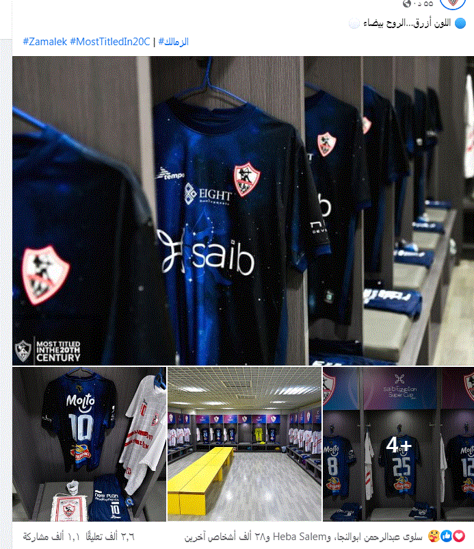 نشرت صفحة نادى الزمالك الرسمية الطقم الأزرق الذي سيرتديه الفريق الأول للفريق الأبيض أمام الأهلي في السابعة مساء اليوم داخل غرفة خلع الملابس على السوبر المحلى والذي يحتضنه ملعب هزاع بن زايد بالإمارات.