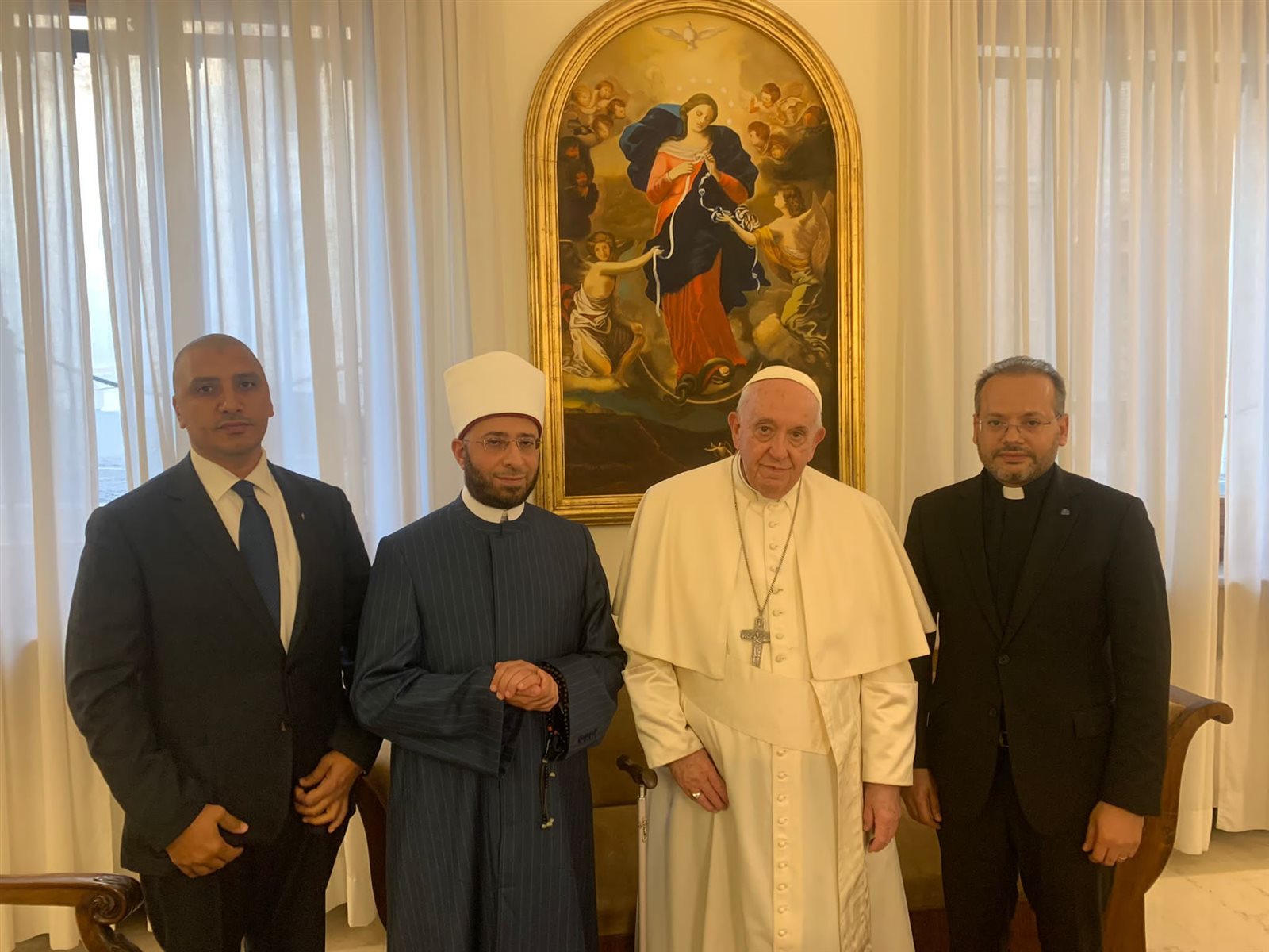 استقبل قداسة البابا فرنسيس في مقر إقامته بالفاتيكان فضيلة الشيخ أسامة الأزهري، مستشار رئيس الجمهورية للشؤون الدينية وأحد علماء الأزهر الشريف وعضو مجلس أمناء مؤسسة الأخوة الإنسانية المصرية، وشارك في اللقاء سيادة المونسينيور د. يوأنس لحظي جيد، السكرتير الشخصي السابق لقداسته ورئيس مؤسسة الأخوة الإنسانية المصرية.