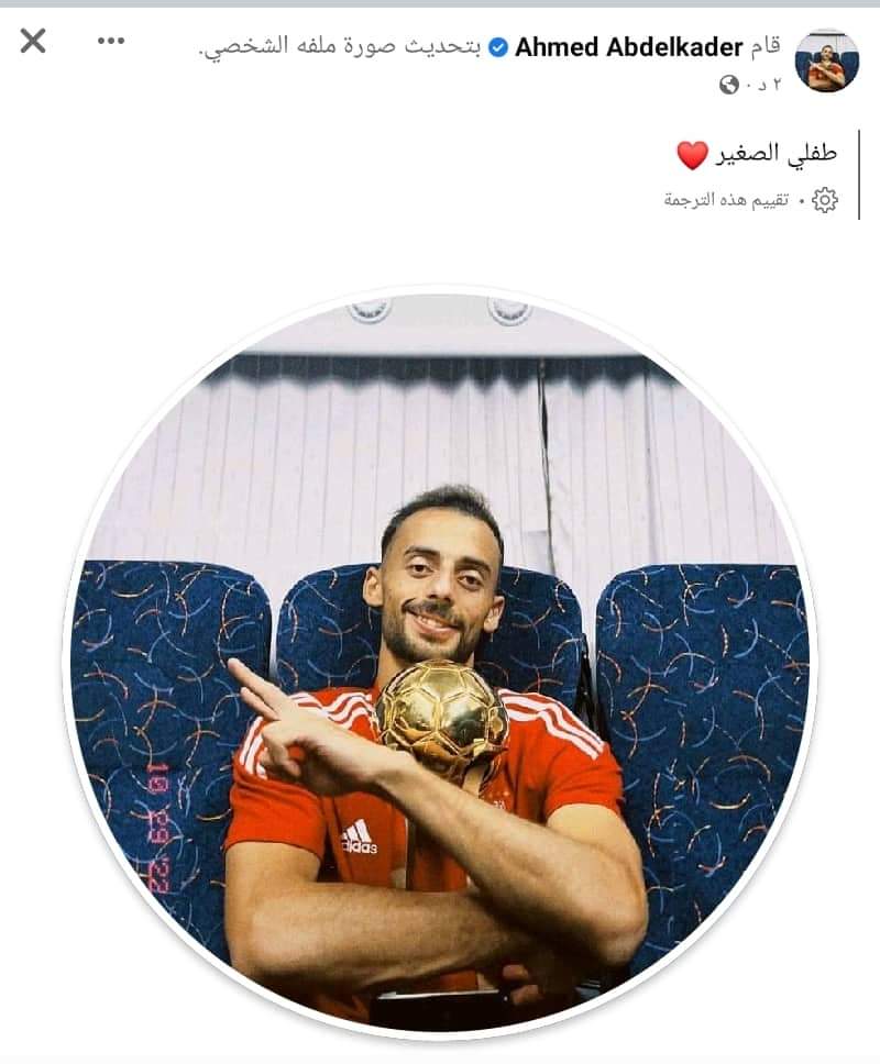 ونشر عبد القادر صورته مع كأس السوبر عبر صفحته على موقع التواصل الاجتماعي فيس بوك معلقًا عليها: "طفلي الصغير".