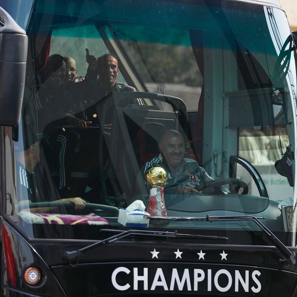 وحرص لاعبو الفريق الذين لم يسافروا مع البعثة والجهاز الإداري وجميع العاملين بقطاع الكرة على الترحيب باللاعبين والهتاف لهم فور وصول حافلة الفريق.