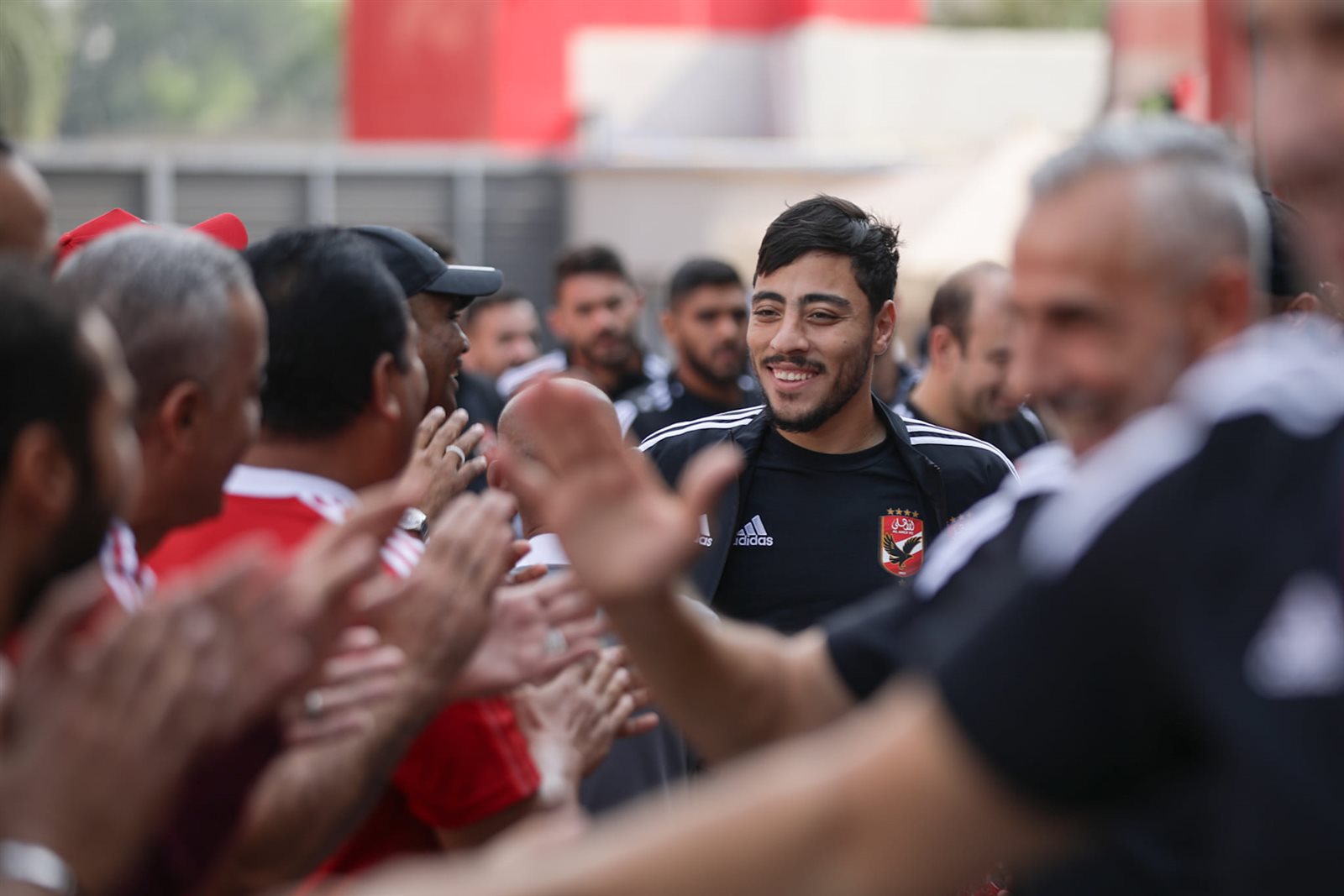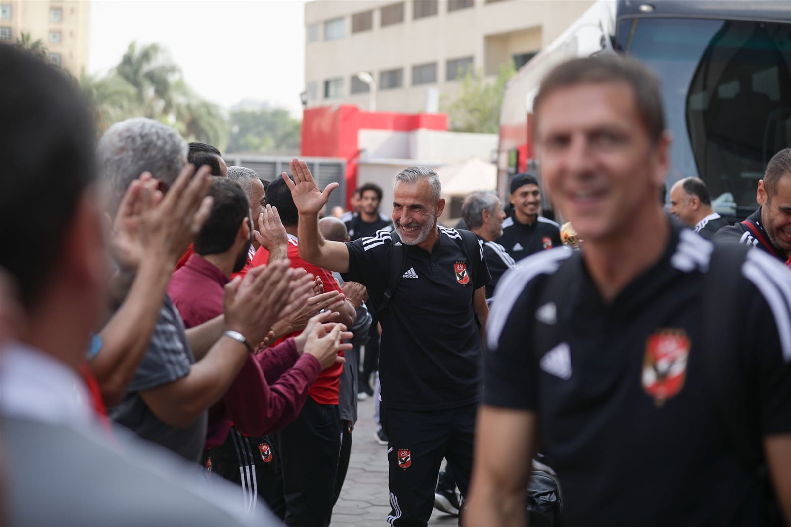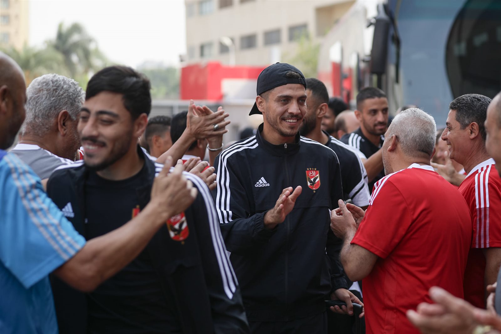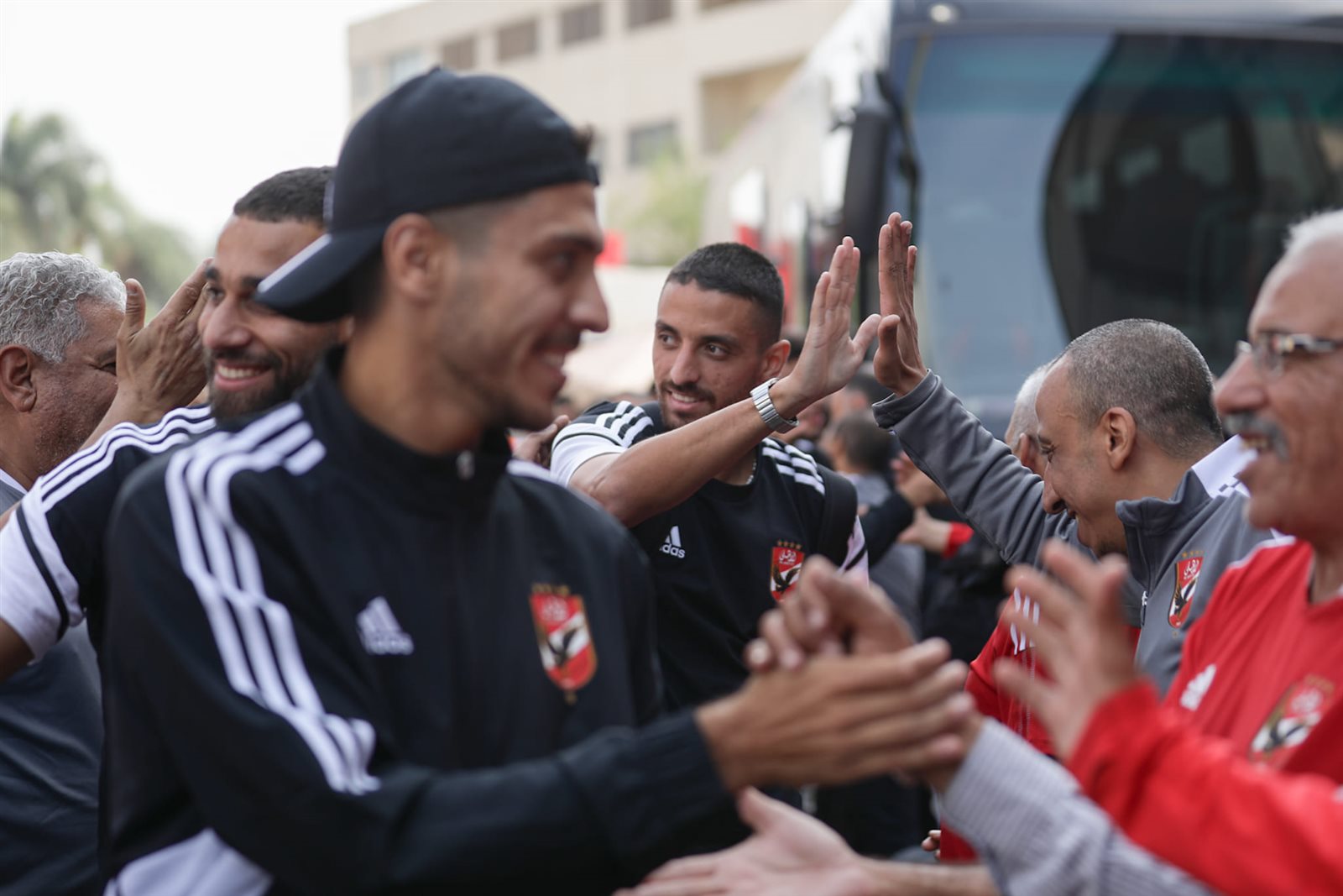 ونشرت الصفحة الرسمية للنادي الأهلي صور وصول اللاعبين لملعب التتش استعدادًا لخوض المران وسط استقبال و تصفيق وهتاف من أعضاء المارد الأحمر.
