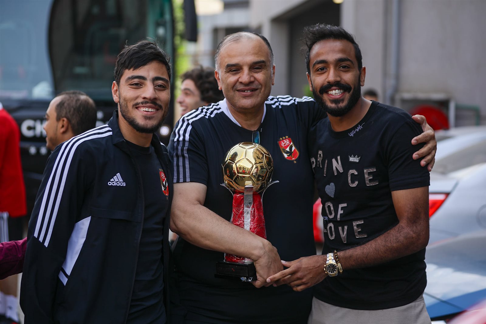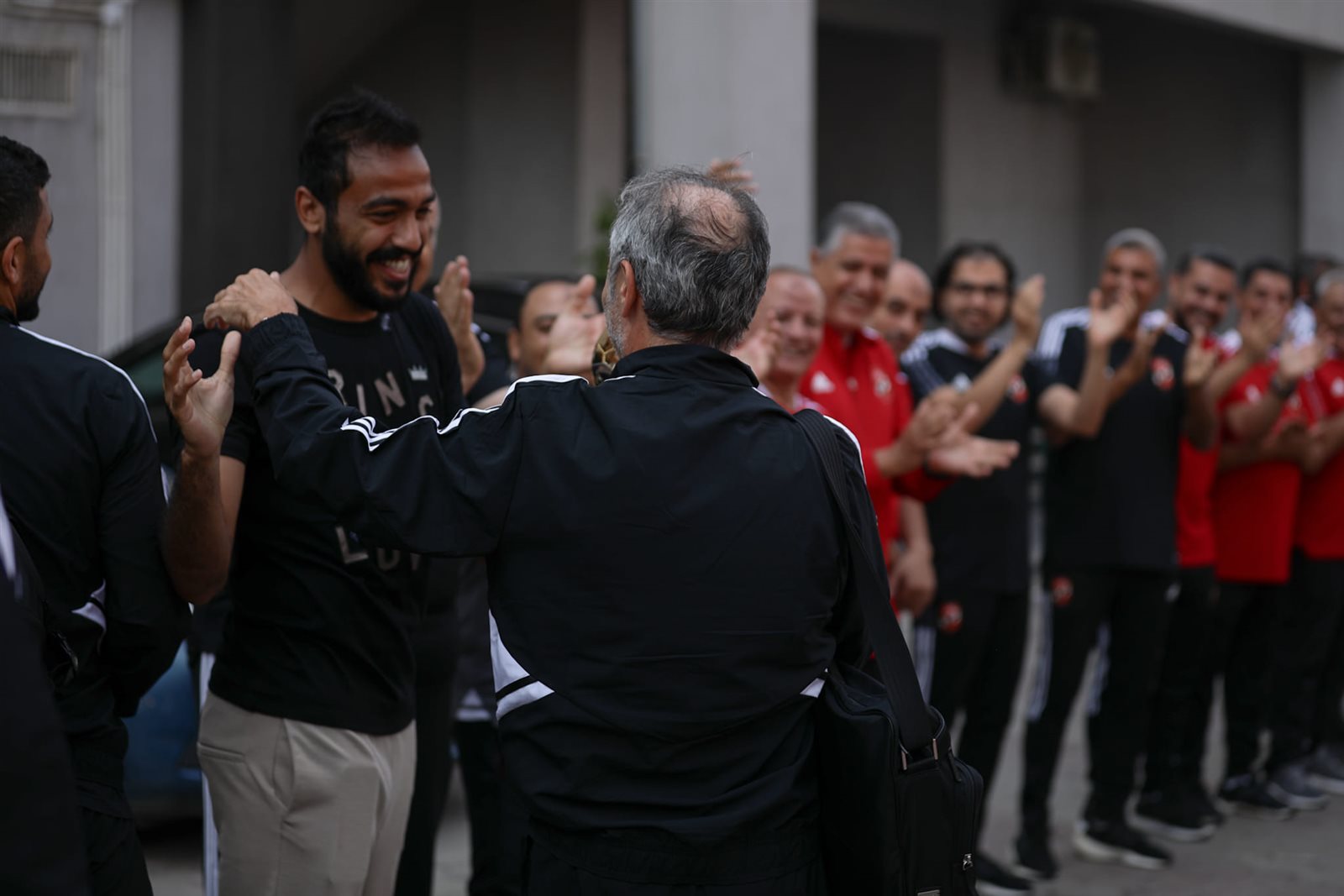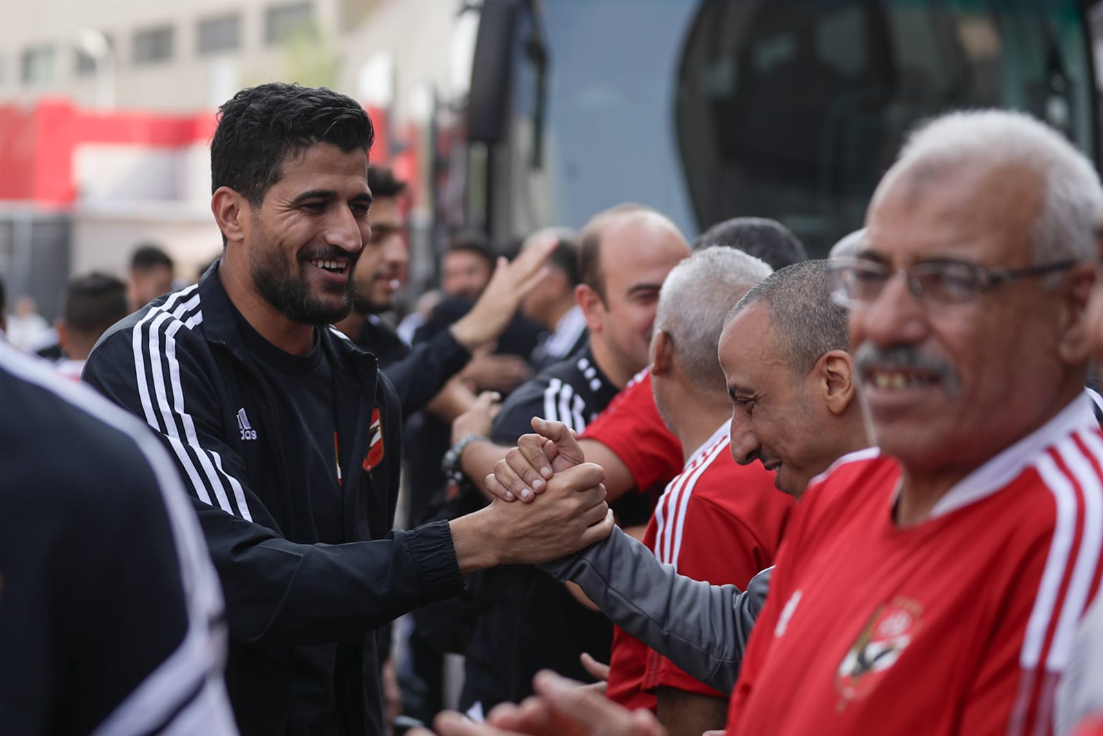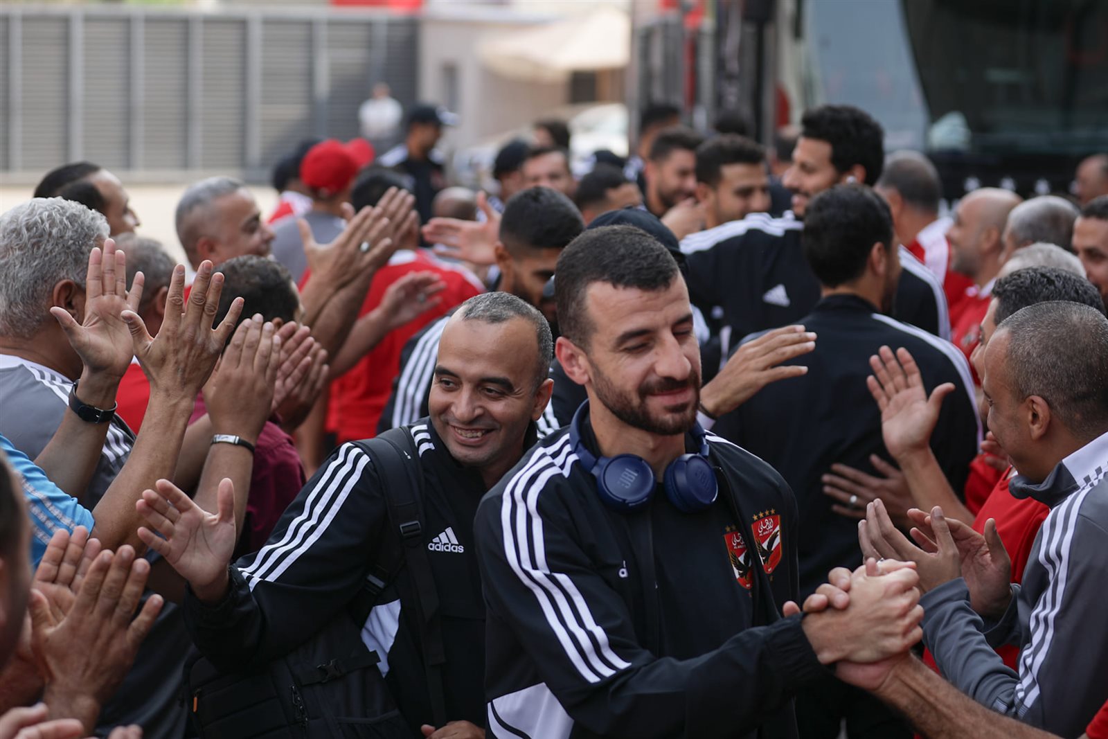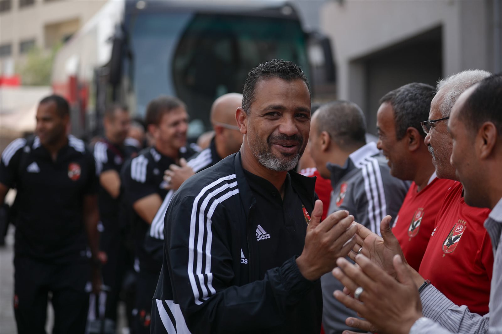 ونشرت الصفحة الرسمية للنادي الأهلي صور وصول اللاعبين لملعب التتش استعدادًا لخوض المران وسط استقبال و تصفيق وهتاف من أعضاء المارد الأحمر.