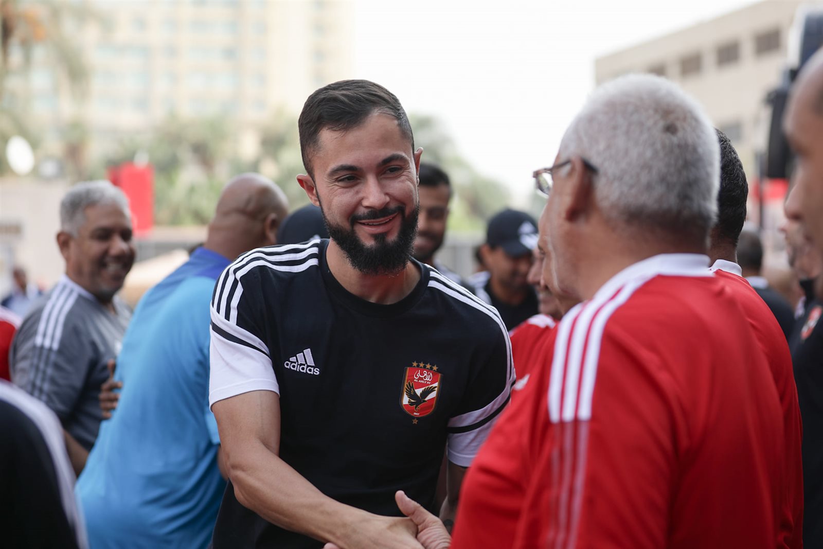 وجاء في مقدمة المستقبلين، محمود كهربا لاعب الفريق، الذي استقبل مارسيل كولر المدير الفني للفريق بشكل خاص.
