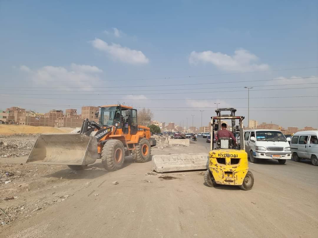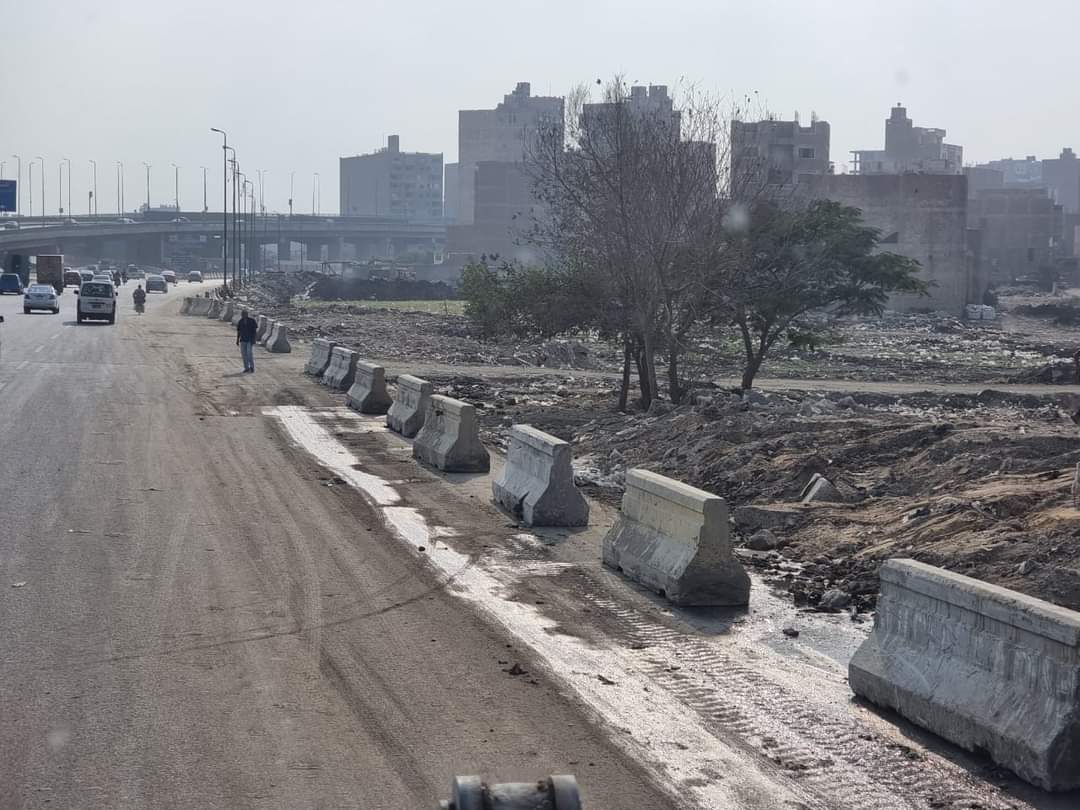 انتهت الأجهزة التنفيذية لمحافظة الجيزة من تركيب نيوجيرسي بعدد من قطاعات الطريق الدائري نزلة المريوطية بحي الطالبية.